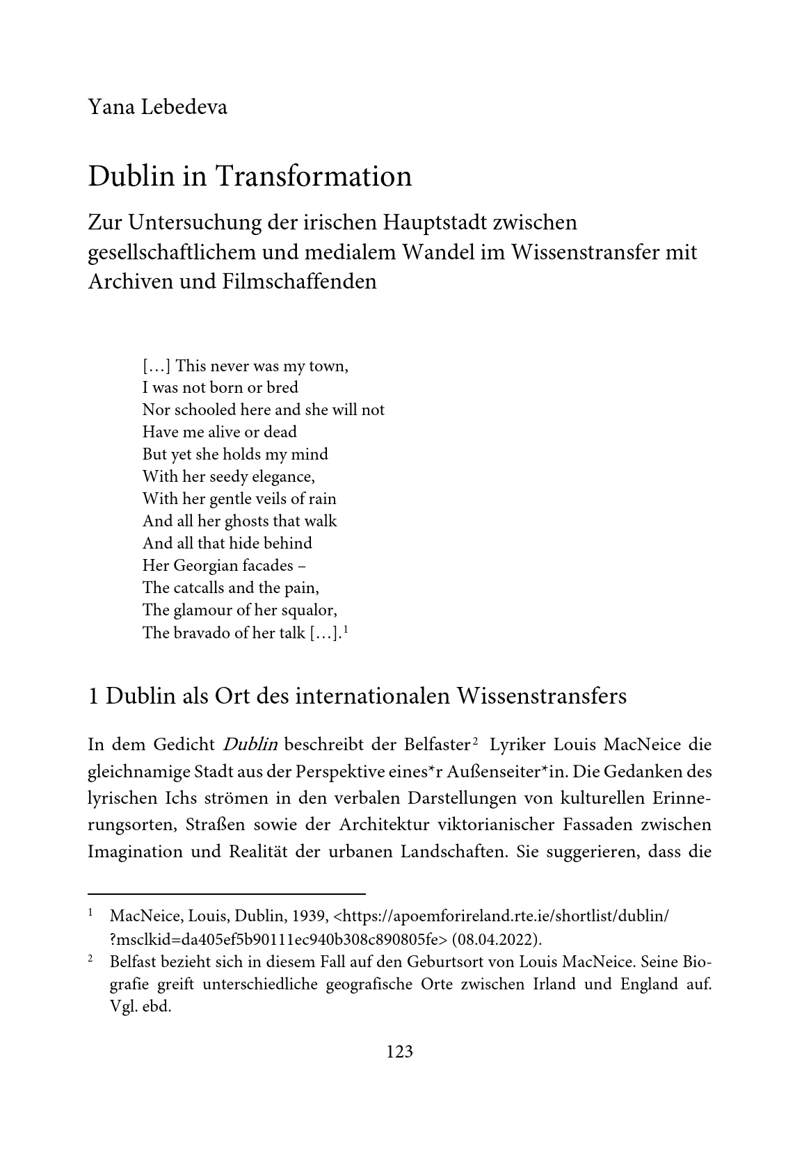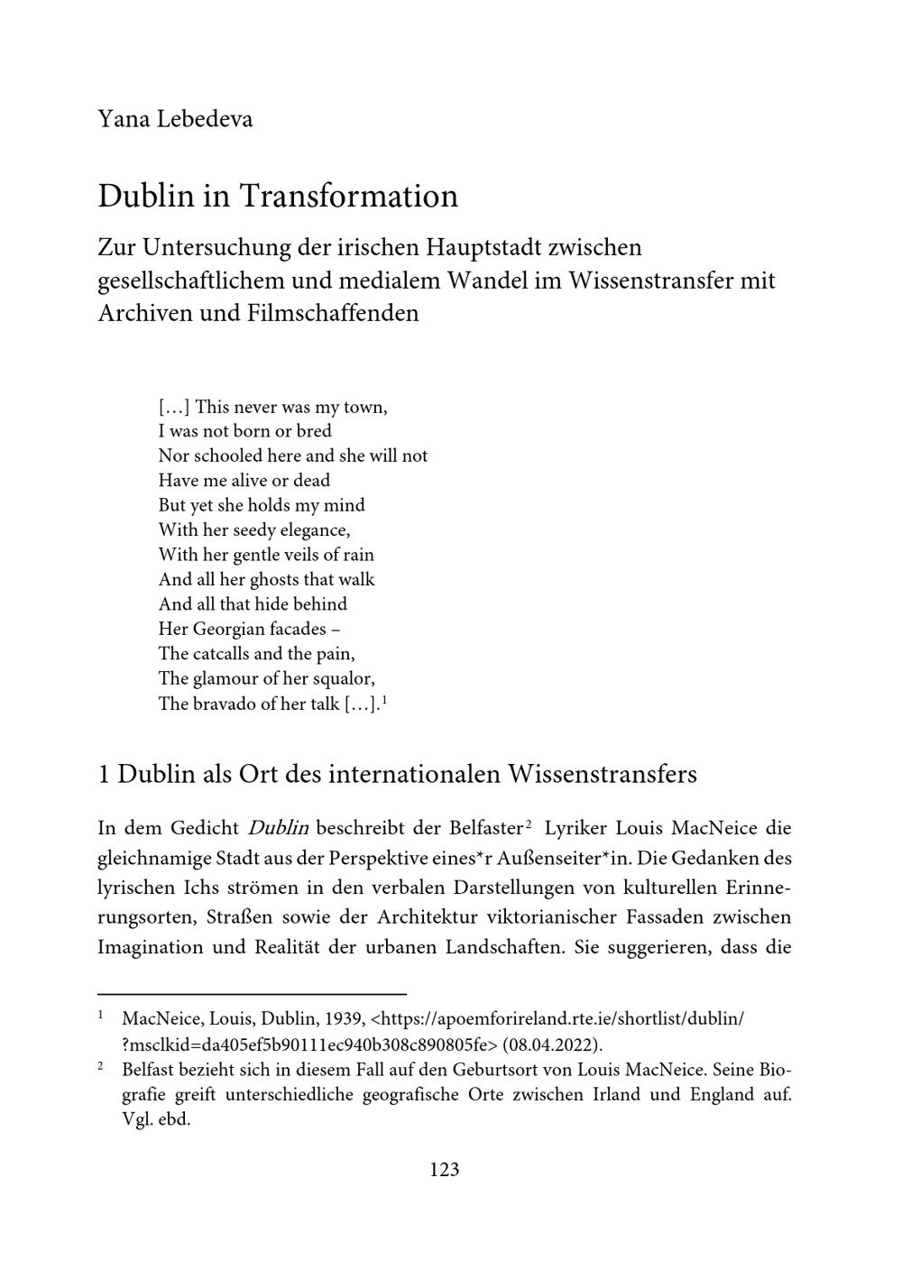 I Wissenstransfer aus literaturwissenschaftlicher und historischer Perspektive