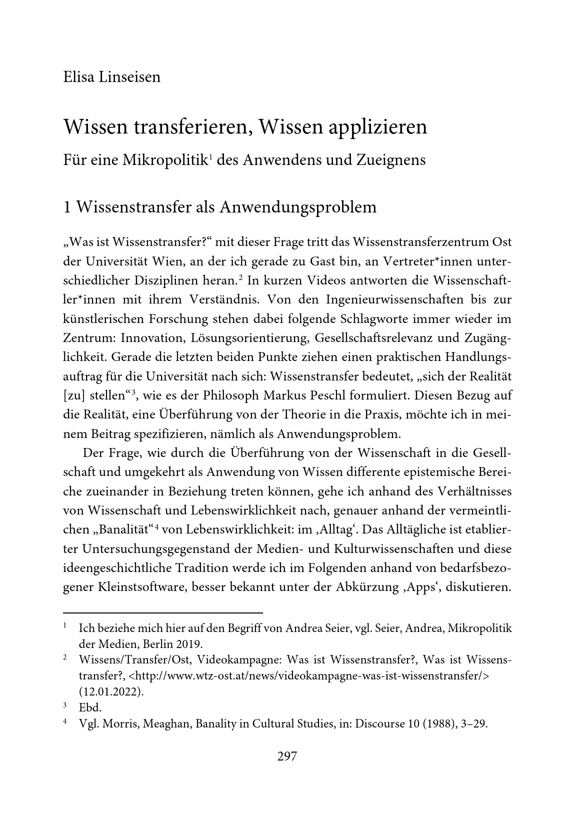 Wissenstransfer aus kulturwissenschaftlicher Perspektive