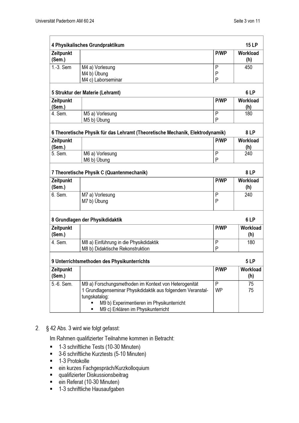 Satzung zur Änderung der Besonderen Bestimmungen der Prüfungsordnung für den Bachelorstudiengang Lehramt an Berufskollegs mit dem Unterrichtsfach Physik an der Universität Paderborn : vom 30. September 2024