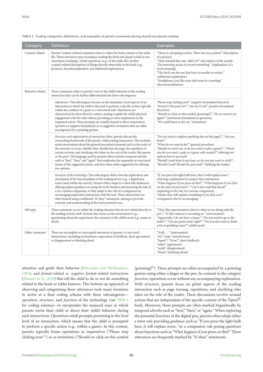 The role of behavior-related comments in parent-child interactions with the digital audio learning system Tiptoi® / Eugenia Wildt, Faculty of Arts and Humanities, Paderborn University, Paderborn, Germany