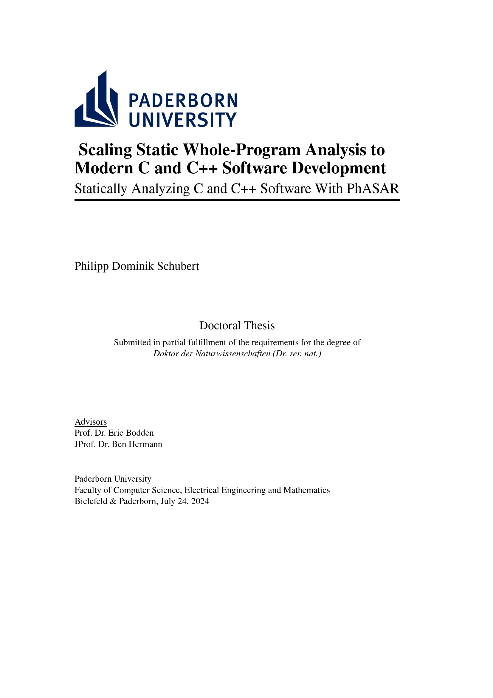 Scaling static whole-program analysis to modern C and C++ software development : statically analyzing C and C++ software with PhASAR / Philipp Dominik Schubert ; Advisors: Prof. Dr. Eric Bodden, JProf. Dr. Ben Hermann