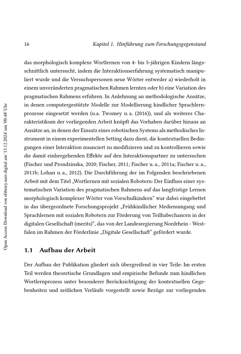 Wortlernen mit sozialen Robotern : der Einfluss einer systematischen Variation des pragmatischen Rahmens auf das langfristige Lernen morphologisch komplexer Wörter von Vorschulkindern / Nils Frederik Tolksdorf