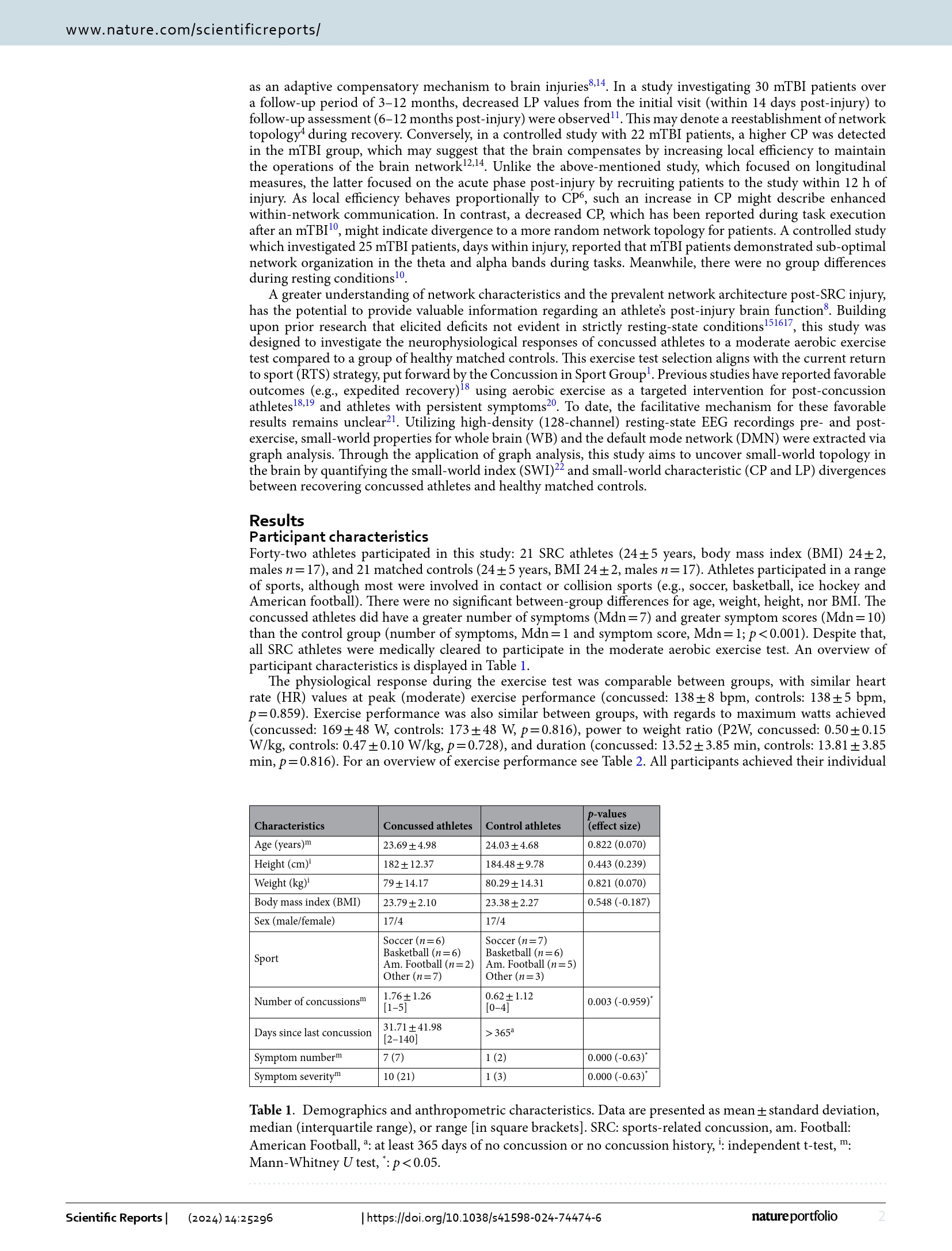 Impact of moderate aerobic exercise on small-world topology and characteristics of brain networks after sport-related concussion : an exploratory study / Jessica Coenen, Michael Strohm & Claus Reinsberger