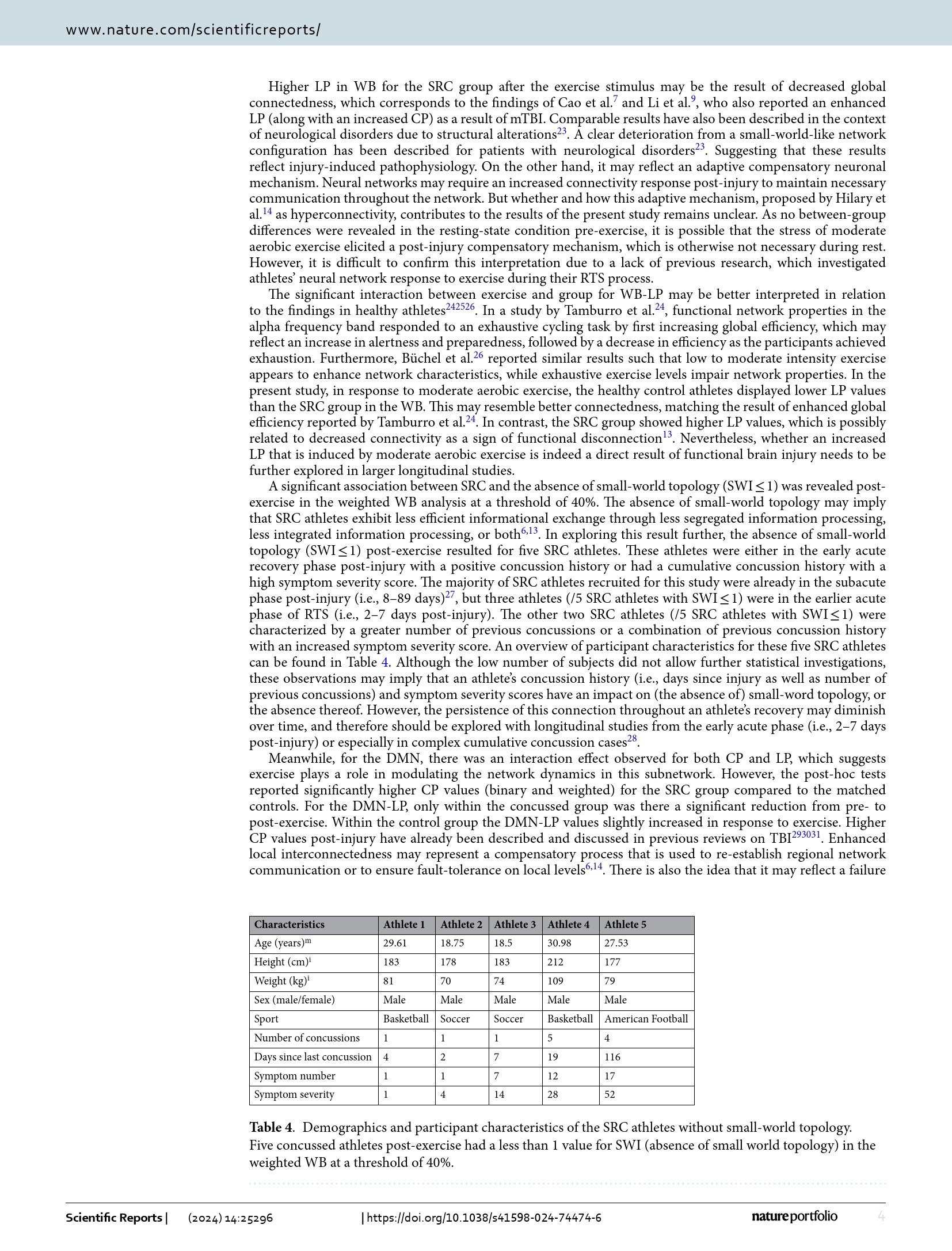 Impact of moderate aerobic exercise on small-world topology and characteristics of brain networks after sport-related concussion : an exploratory study / Jessica Coenen, Michael Strohm & Claus Reinsberger