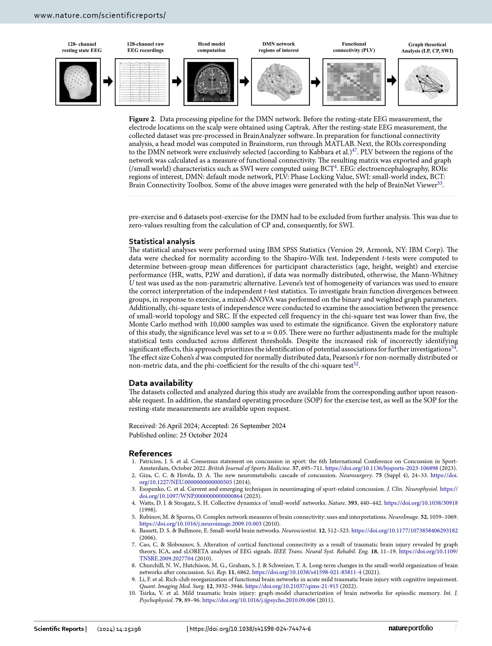 Impact of moderate aerobic exercise on small-world topology and characteristics of brain networks after sport-related concussion : an exploratory study / Jessica Coenen, Michael Strohm & Claus Reinsberger