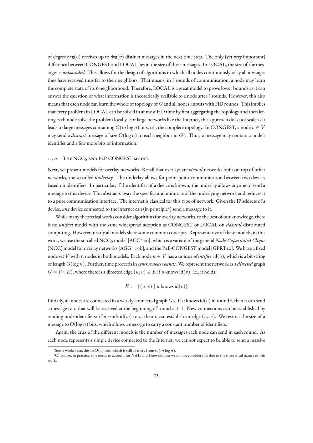 The NCC0 and P2P-CONGEST model