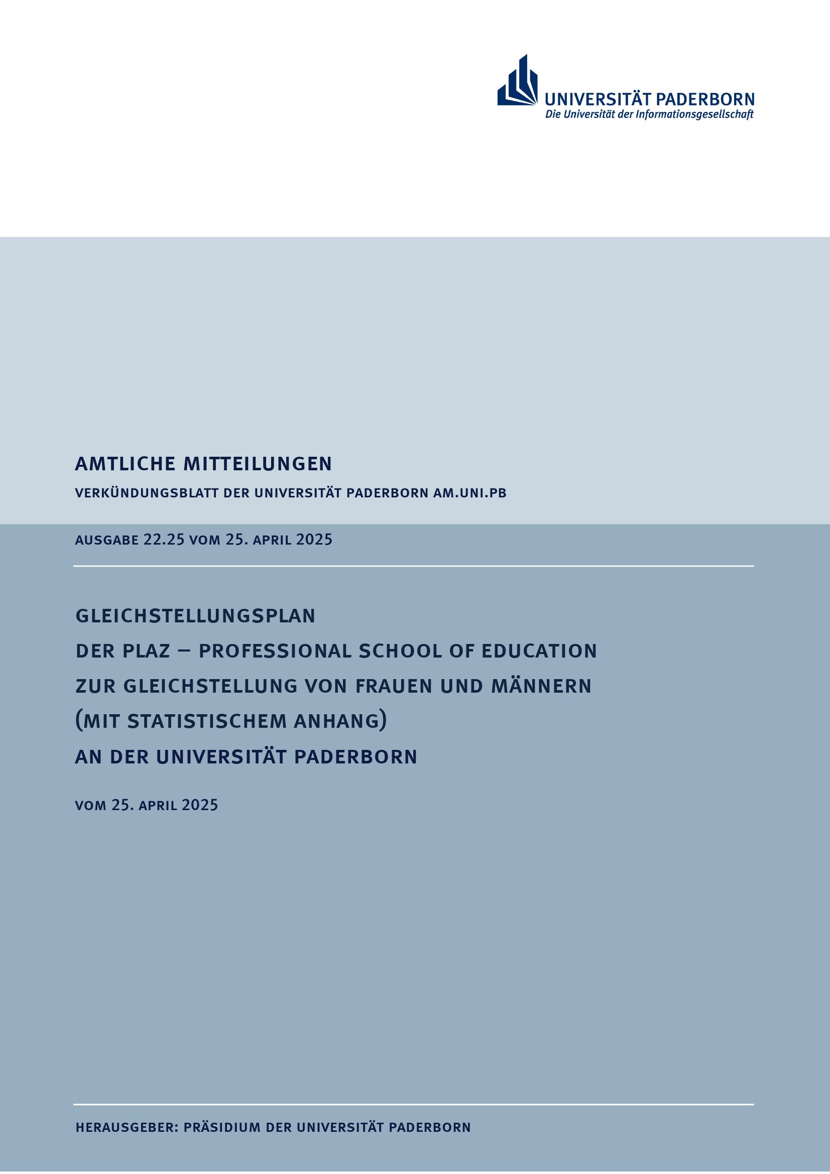 Gleichstellungsplan der PLAZ – Professional School of Education zur Gleichstellung von Frauen und Männern (mit statistischem Anhang) an der Universität Paderborn : vom 25. April 2025