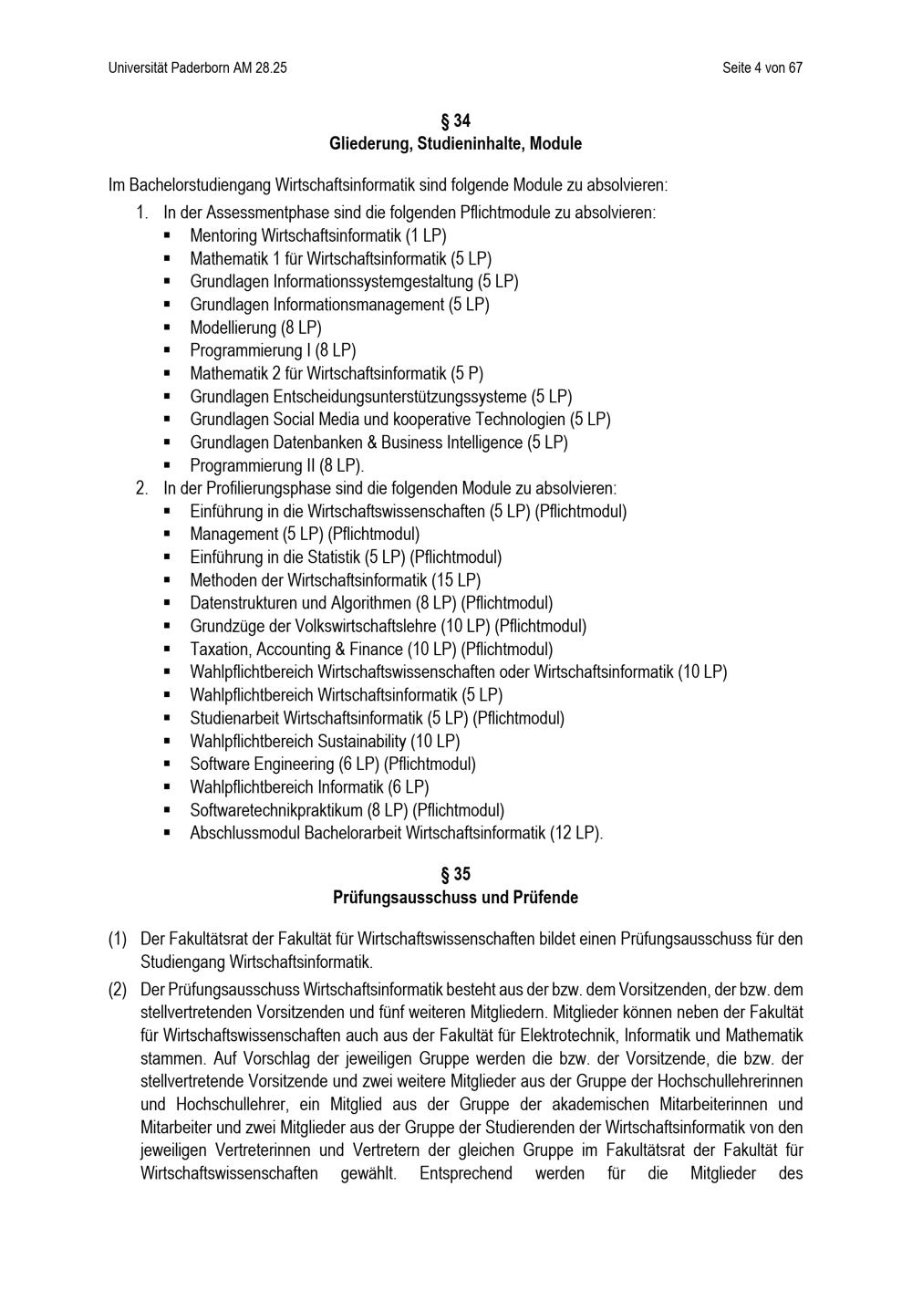 Besondere Bestimmungen der Prüfungsordnung für den Bachelorstudiengang Wirtschaftsinformatik der Fakultät für Wirtschaftswissenschaften an der Universität Paderborn : vom 25. April 2025
