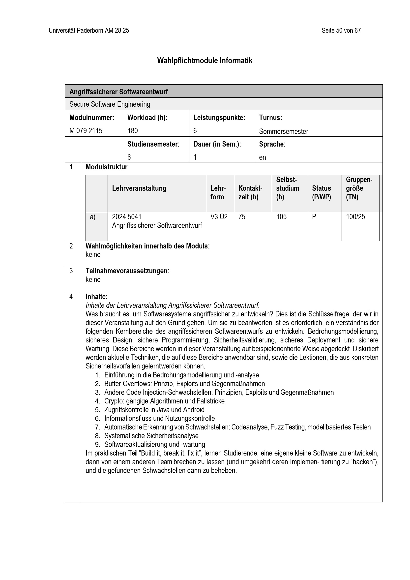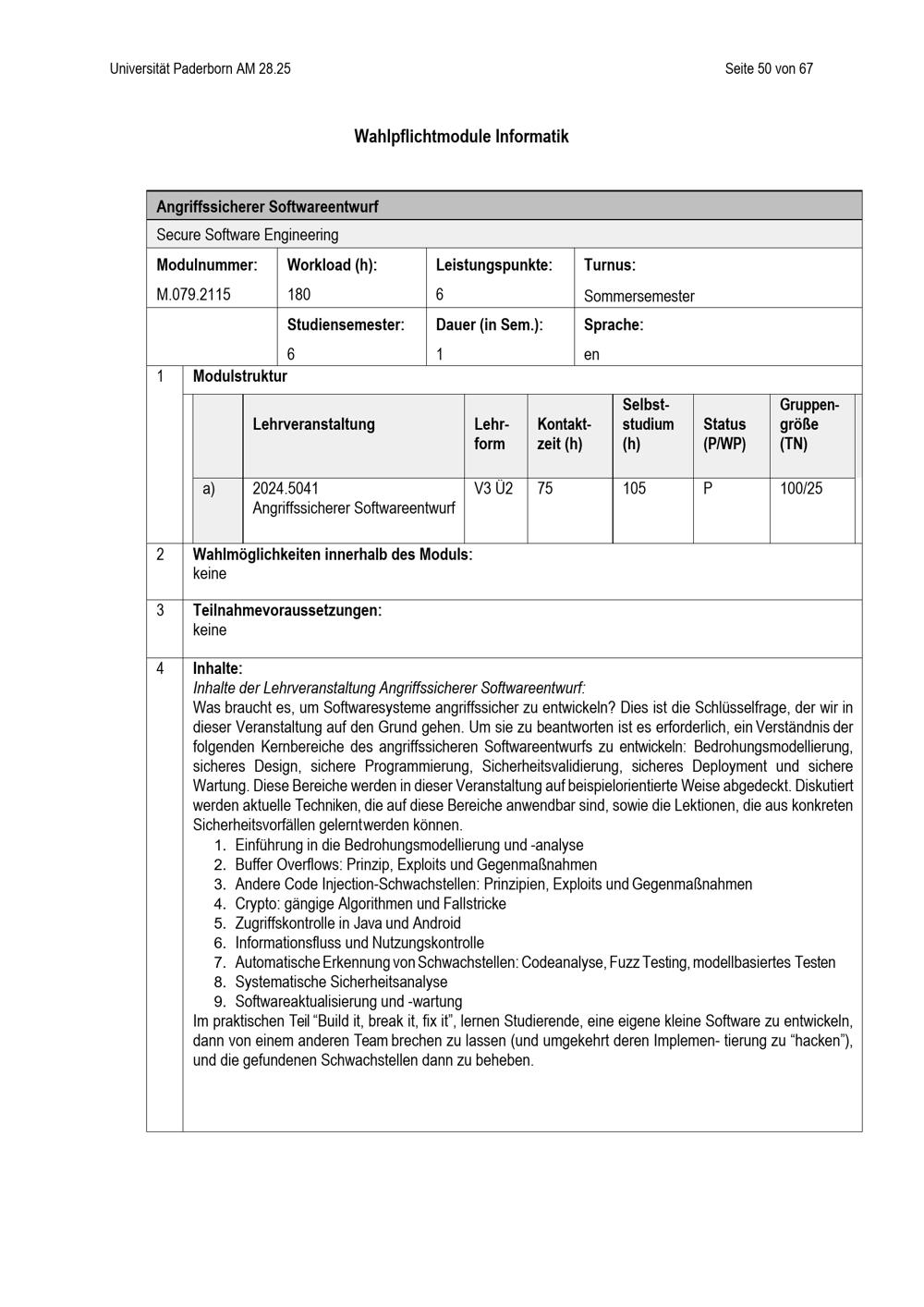 Besondere Bestimmungen der Prüfungsordnung für den Bachelorstudiengang Wirtschaftsinformatik der Fakultät für Wirtschaftswissenschaften an der Universität Paderborn : vom 25. April 2025