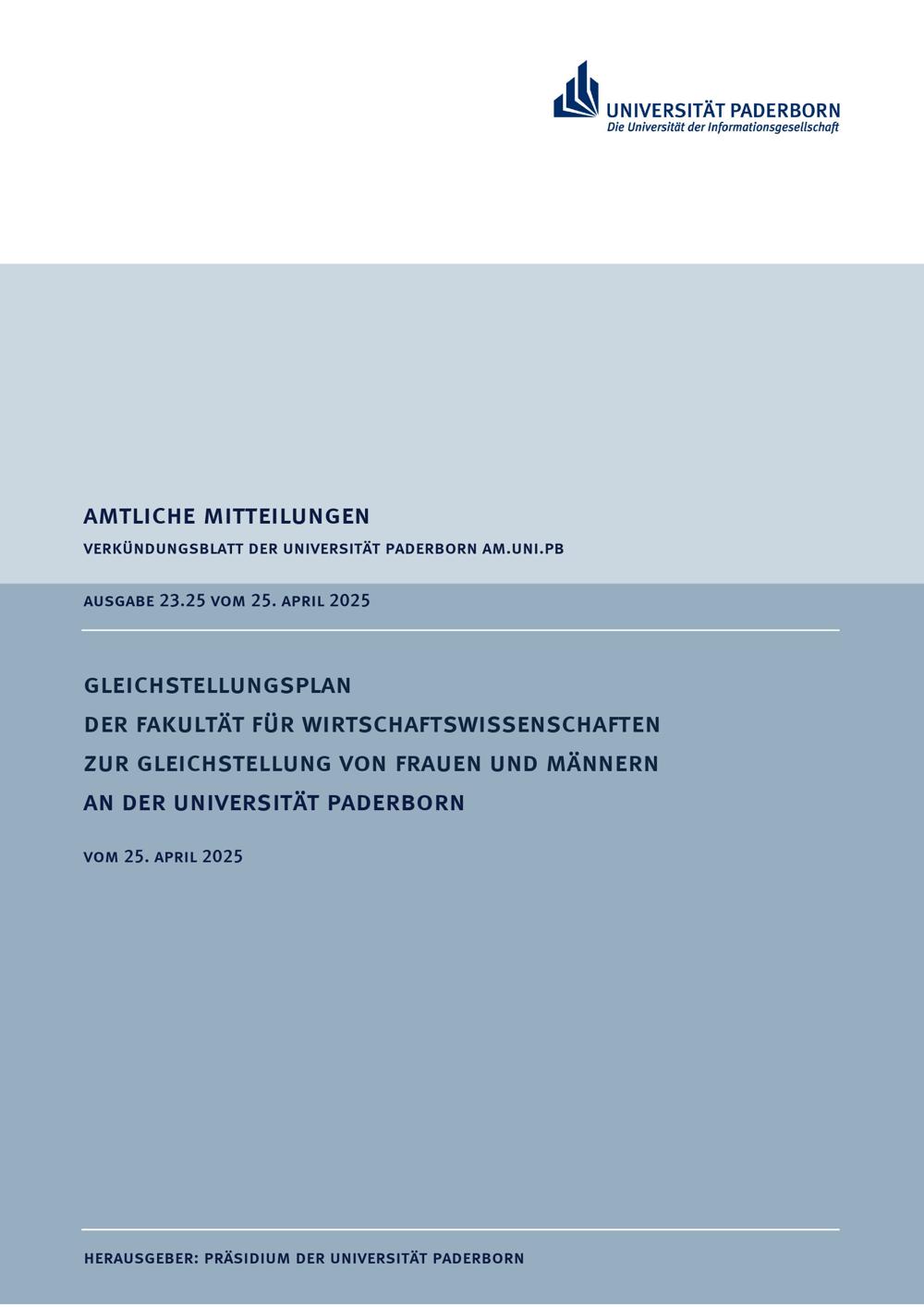 Gleichstellungsplan der Fakultät für Wirtschaftswissenschaften zur Gleichstellung von Frauen und Männern an der Universität Paderborn : vom 25. April 2025
