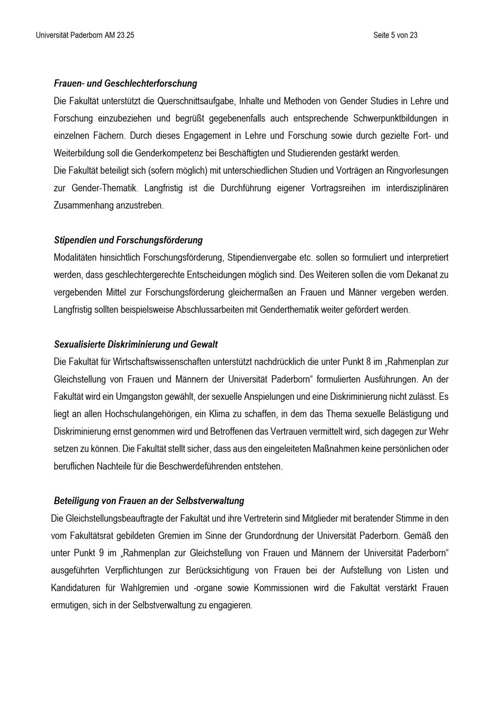 Gleichstellungsplan der Fakultät für Wirtschaftswissenschaften zur Gleichstellung von Frauen und Männern an der Universität Paderborn : vom 25. April 2025