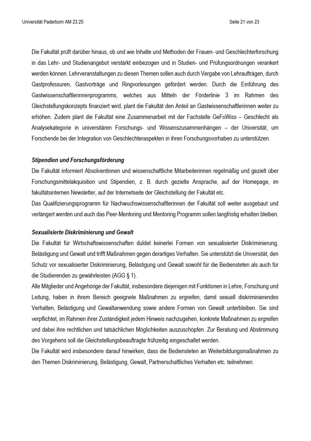 Gleichstellungsplan der Fakultät für Wirtschaftswissenschaften zur Gleichstellung von Frauen und Männern an der Universität Paderborn : vom 25. April 2025