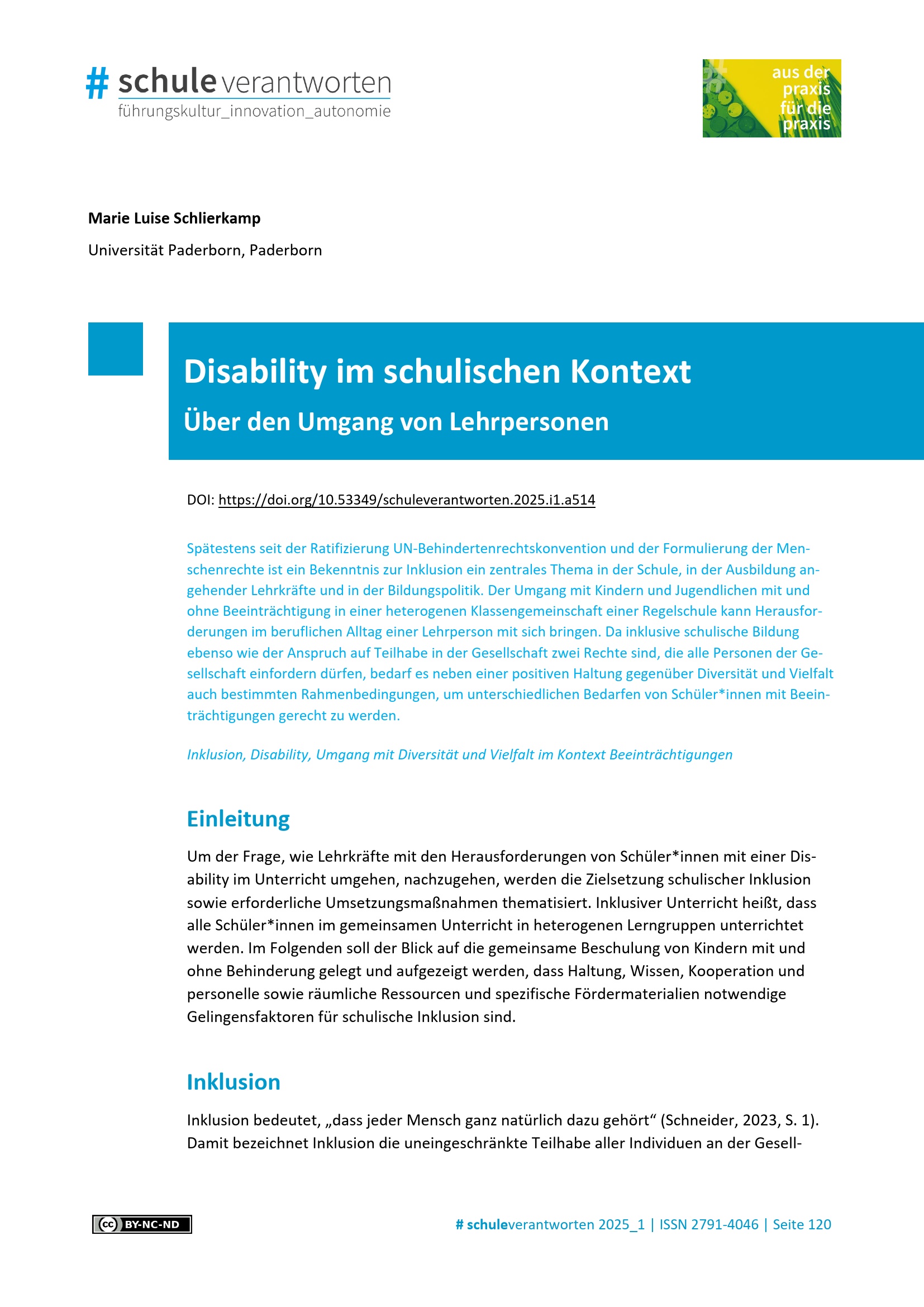 Disability im schulischen Kontext : über den Umgang von Lehrpersonen / Marie Luise Schlierkamp