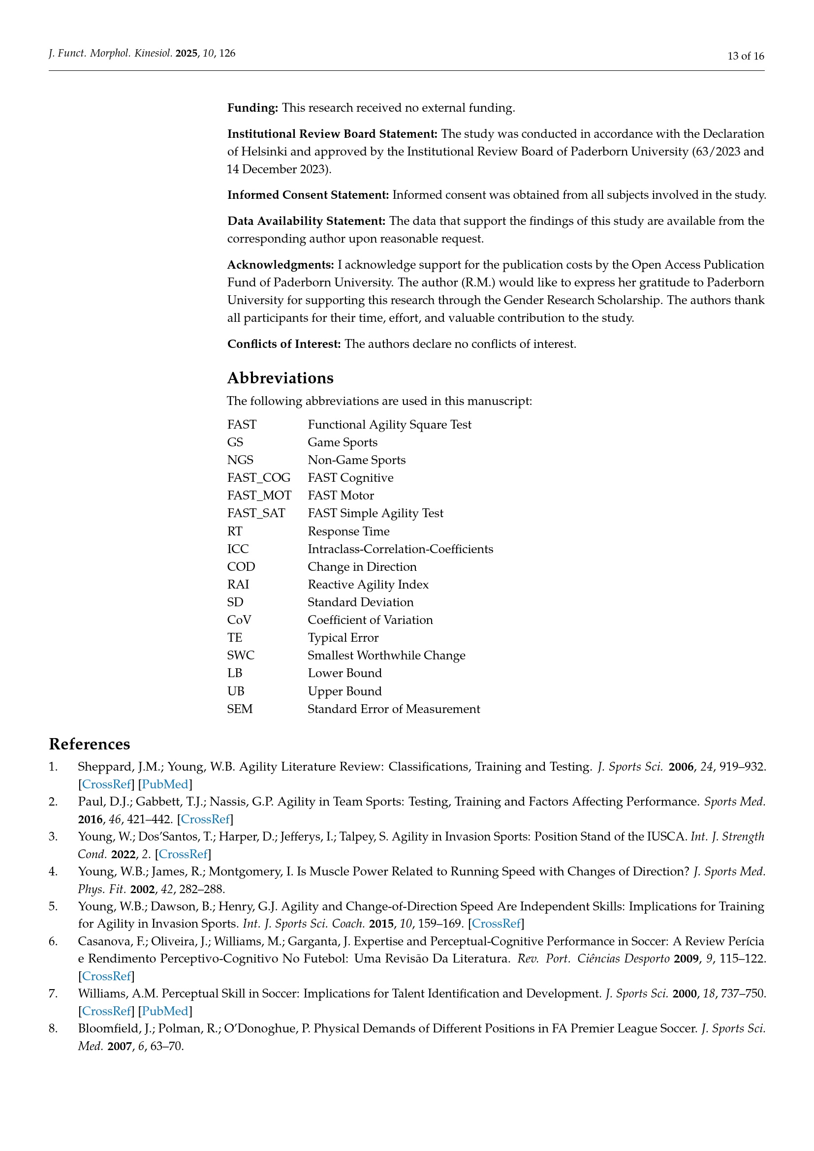 Validation, Reliability, and Usefulness of the Functional Agility Square Test [FAST] / Romina Müller, Daniel Büchel and Jochen Baumeister