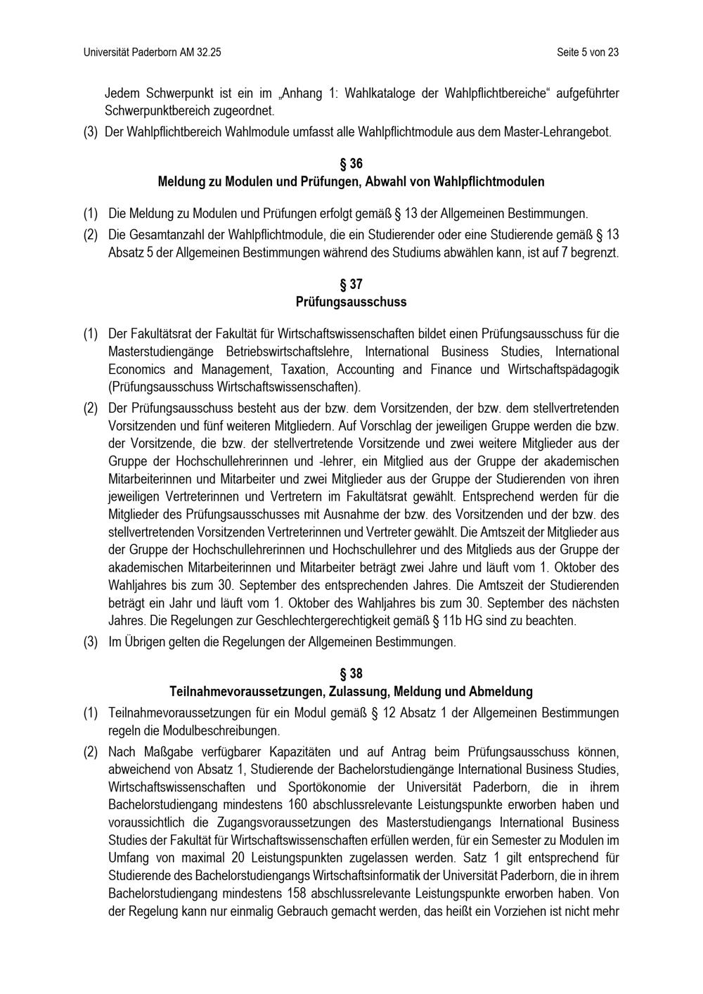Besondere Bestimmungen der Prüfungsordnung für den Masterstudiengang International Business Studies der Fakultät für Wirtschaftswissenschaften an der Universität Paderborn : vom 20. Mai 2025