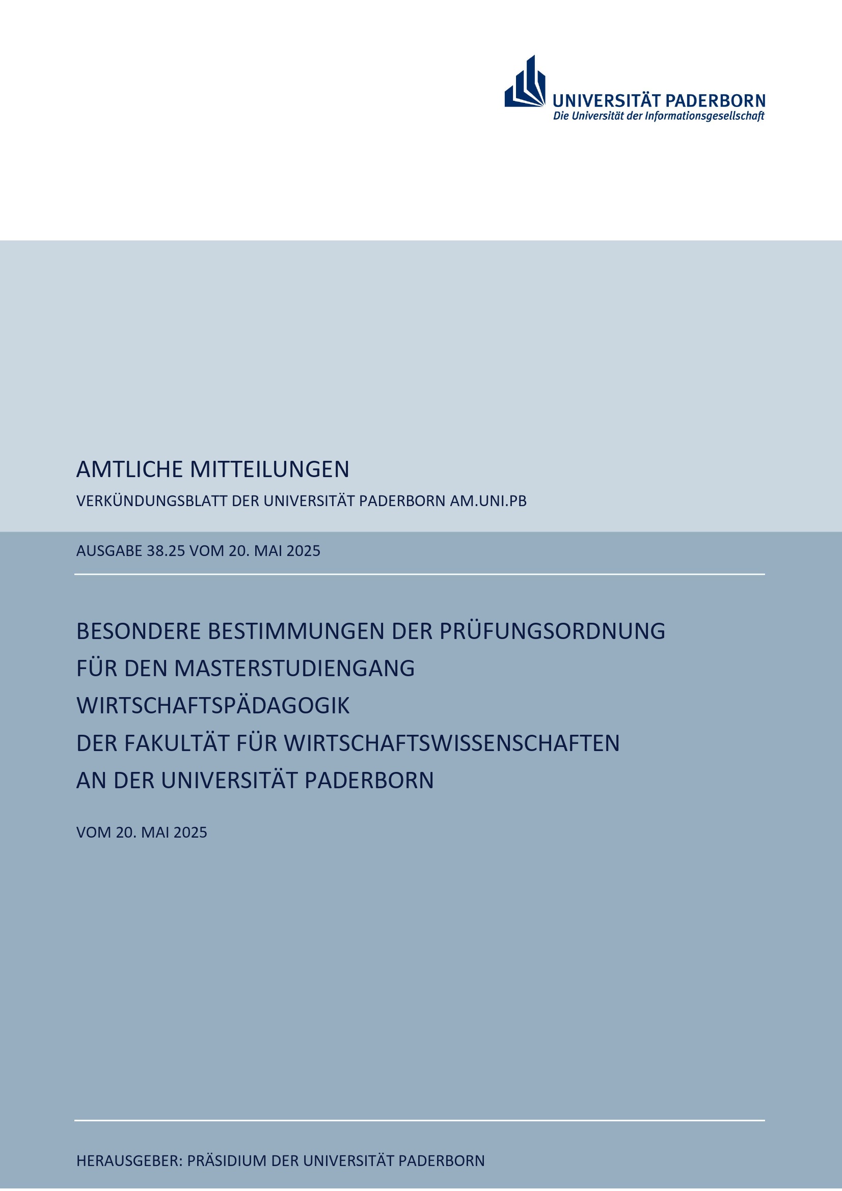 Besondere Bestimmungen der Prüfungsordnung für den Masterstudiengang Wirtschaftspädagogik der Fakultät für Wirtschaftswissenschaften an der Universität Paderborn : vom 20. Mai 2025