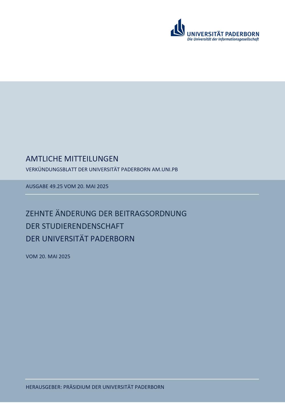 Zehnte Änderung der Beitragsordnung der Studierendenschaft der Universität Paderborn : vom 20. Mai 2025