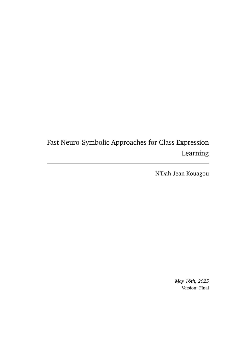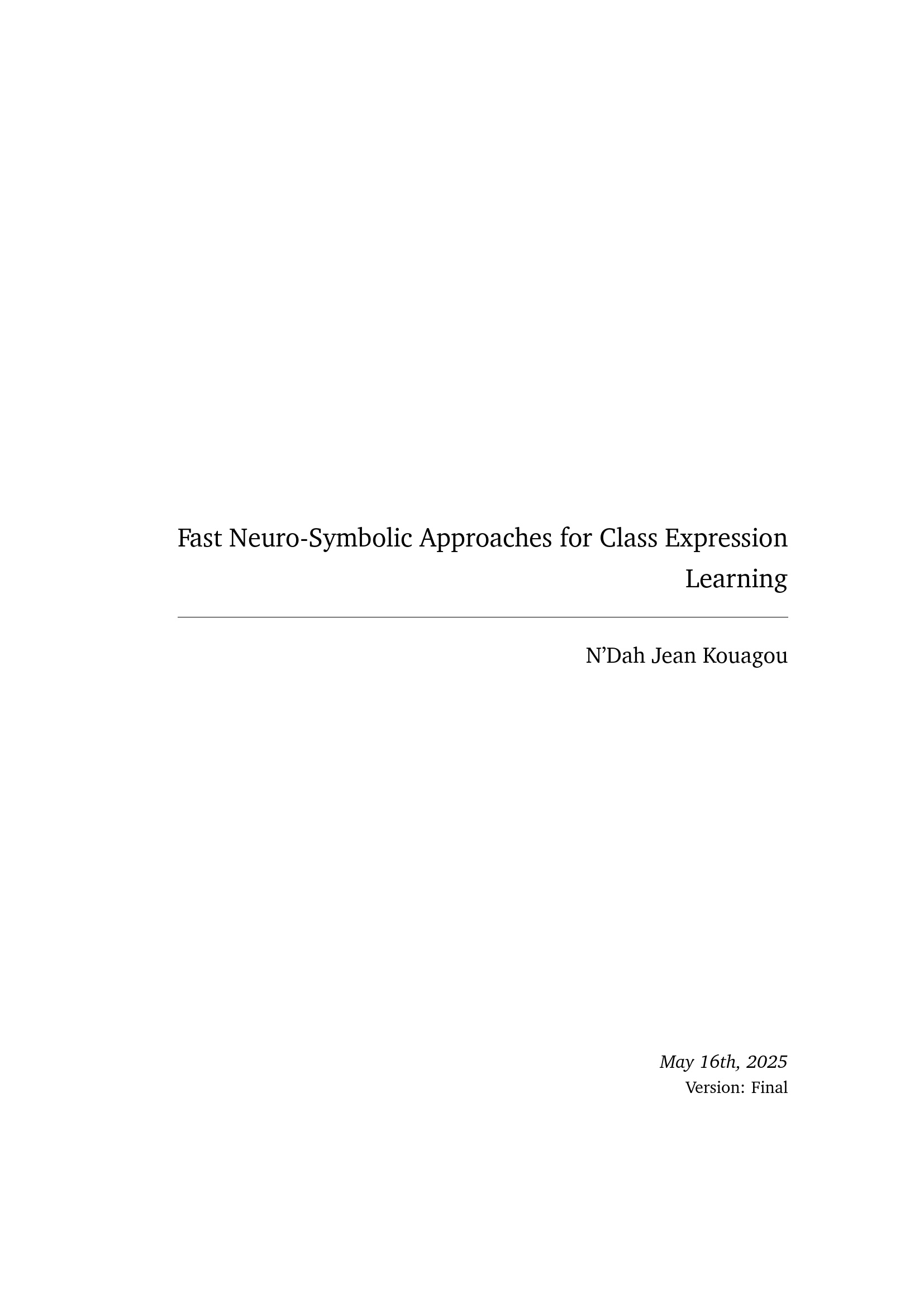 Fast Neuro-Symbolic Approaches for Class Expression Learning / N'Dah Jean Kouagou ; 1. Reviewer Prof. Dr. Axel-Cyrille Ngonga Ngomo (Heinz Nixdorf Institute, Department of Computer Science Paderborn University), 2. Reviewer Prof. Dr. Paul Groth (Informatics Institute University of Amsterdam) ; Supervisor Prof. Dr. Axel-Cyrille Ngonga Ngomo