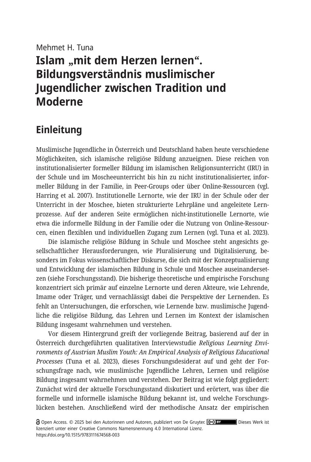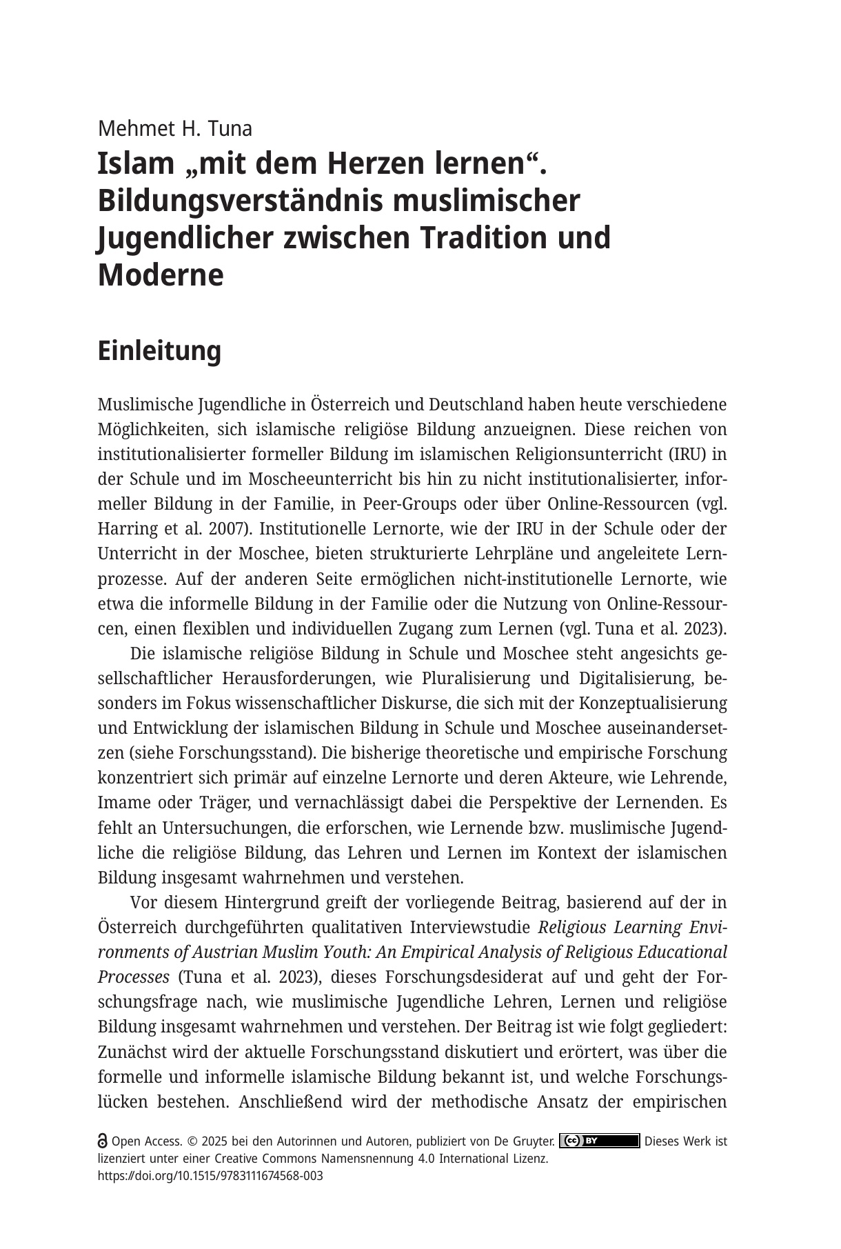 Islam „mit dem Herzen lernen“. Bildungsverständnis muslimischer Jugendlicher zwischen[...]