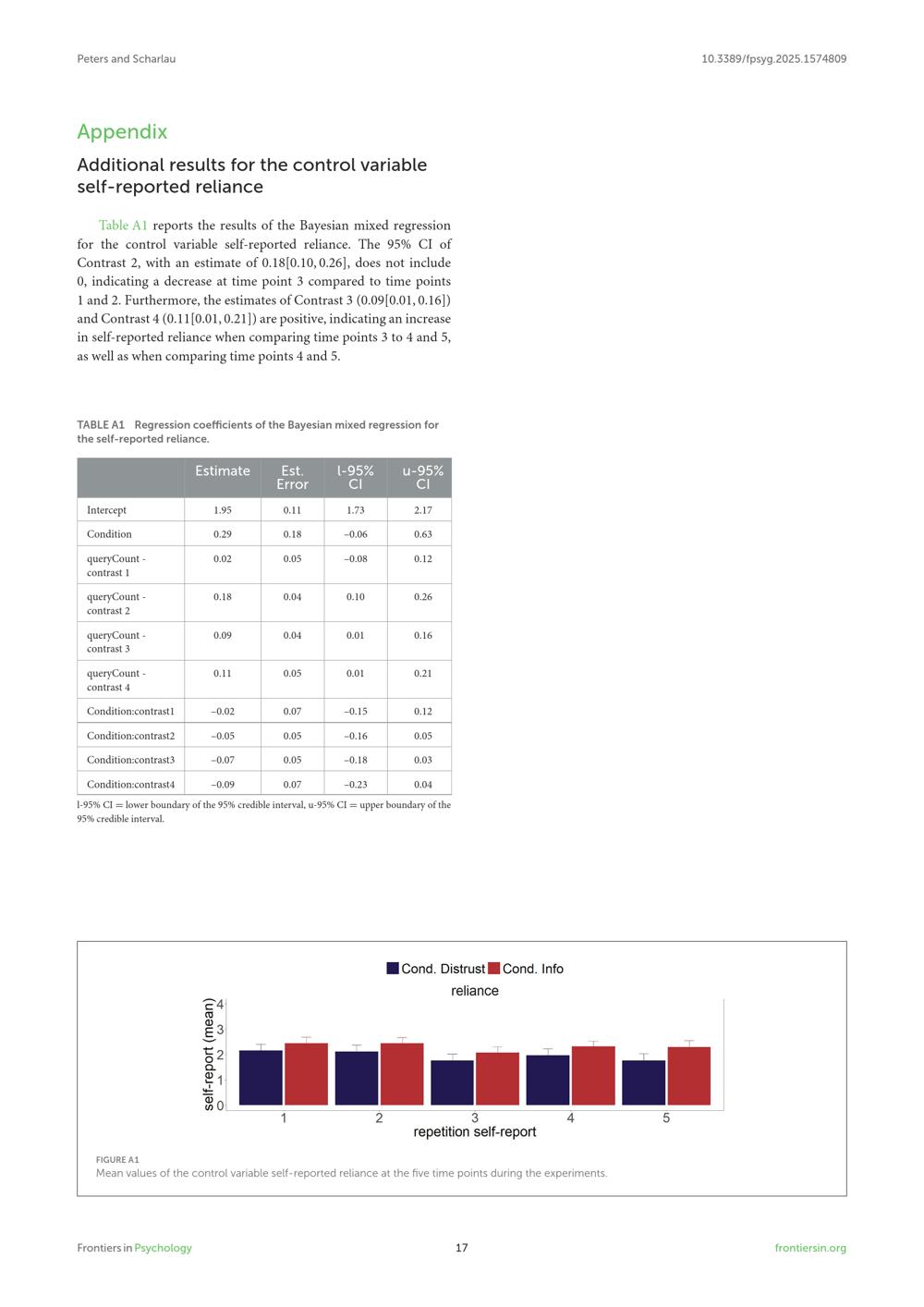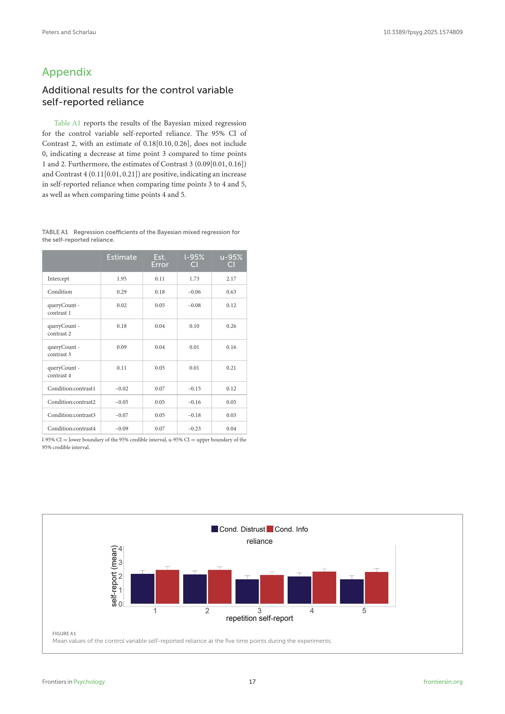 Additional results for the control variable self-reported reliance