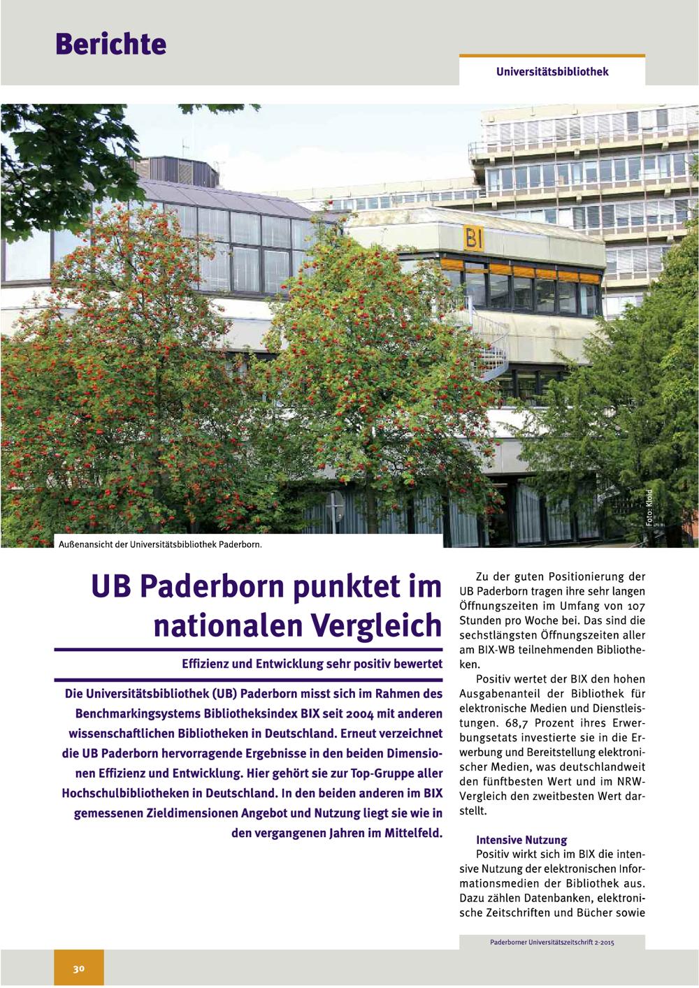 UB Paderborn punktet im nationalen Vergleich : Effizienz und Entwicklung sehr positiv bewertet / Dr. Dietmar Haubfleisch, Dr. Ulrike Hesse