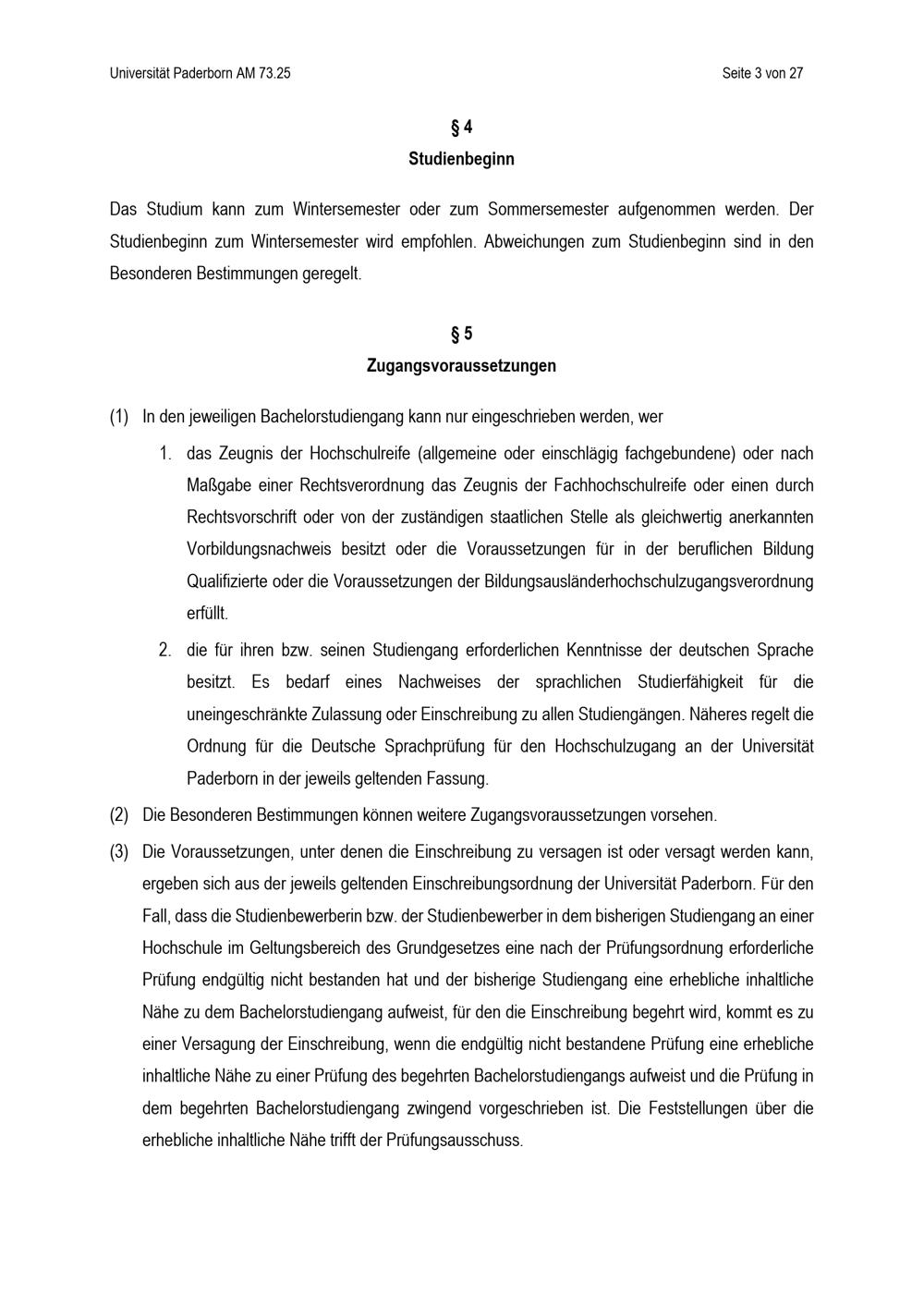 Allgemeine Bestimmungen der Prüfungsordnungen für die Bachelorstudiengänge der Fakultät für Kulturwissenschaften mit Ausnahme des Zwei-Fach-Bachelor-Studiengangs der Universität Paderborn : vom 15: Juli 2025
