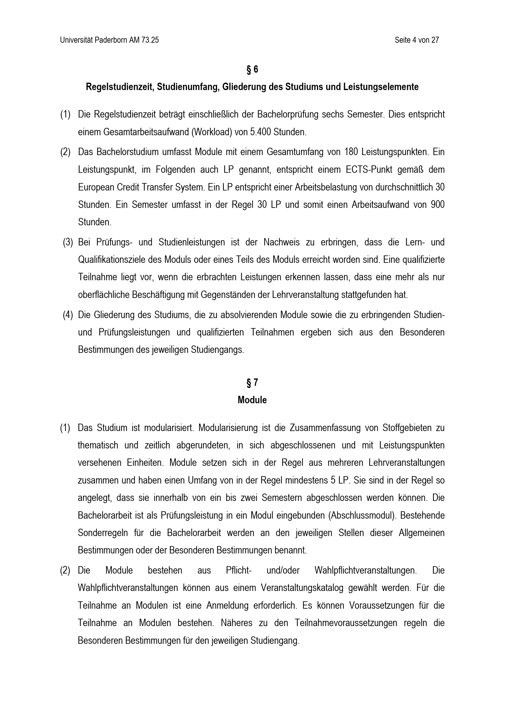 Allgemeine Bestimmungen der Prüfungsordnungen für die Bachelorstudiengänge der Fakultät für Kulturwissenschaften mit Ausnahme des Zwei-Fach-Bachelor-Studiengangs der Universität Paderborn : vom 15: Juli 2025
