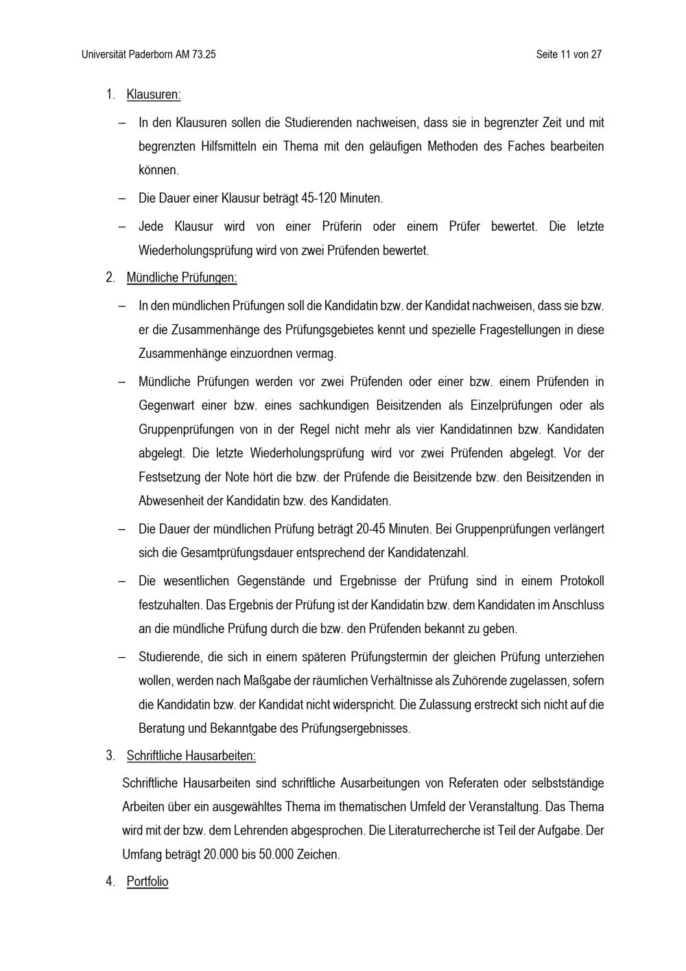Allgemeine Bestimmungen der Prüfungsordnungen für die Bachelorstudiengänge der Fakultät für Kulturwissenschaften mit Ausnahme des Zwei-Fach-Bachelor-Studiengangs der Universität Paderborn : vom 15: Juli 2025