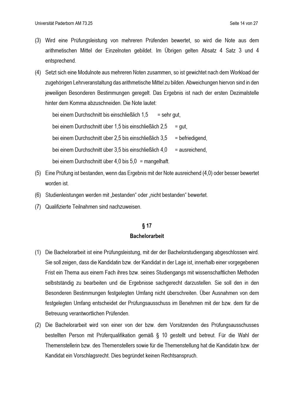 Allgemeine Bestimmungen der Prüfungsordnungen für die Bachelorstudiengänge der Fakultät für Kulturwissenschaften mit Ausnahme des Zwei-Fach-Bachelor-Studiengangs der Universität Paderborn : vom 15: Juli 2025