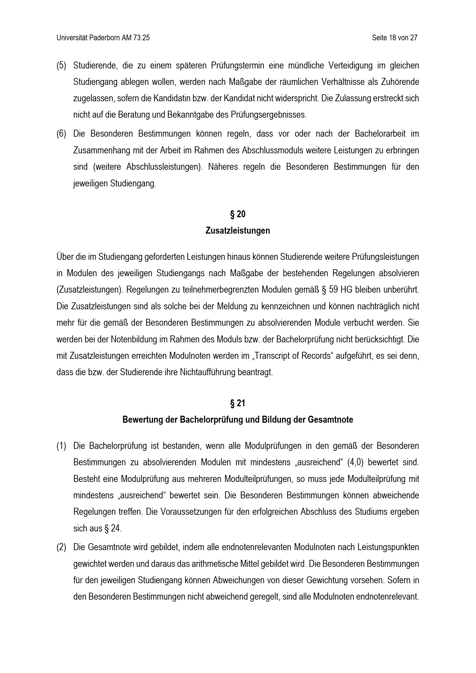 Allgemeine Bestimmungen der Prüfungsordnungen für die Bachelorstudiengänge der Fakultät für Kulturwissenschaften mit Ausnahme des Zwei-Fach-Bachelor-Studiengangs der Universität Paderborn : vom 15: Juli 2025