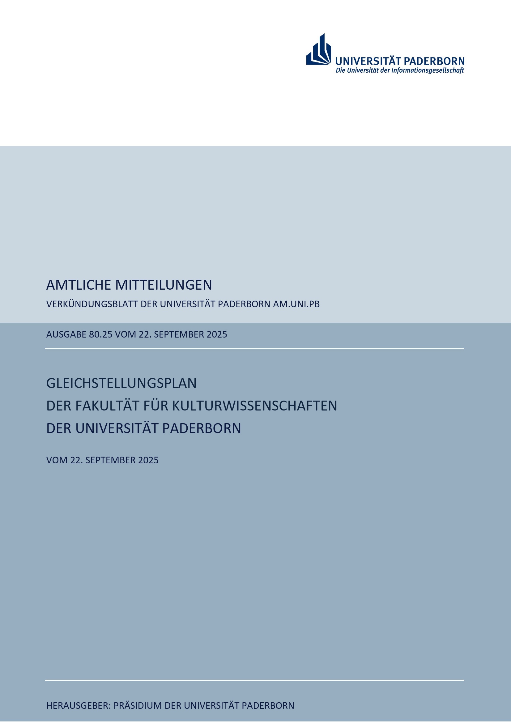 Gleichstellungsplan der Fakultät für Kulturwissenschaften der Universität Paderborn : vom 22. September 2025