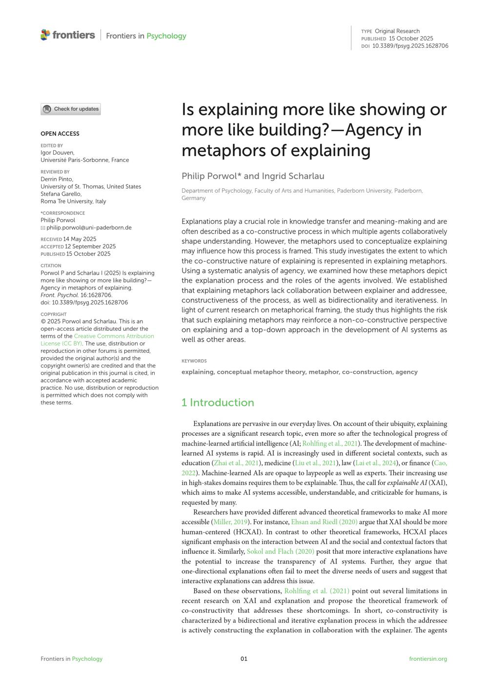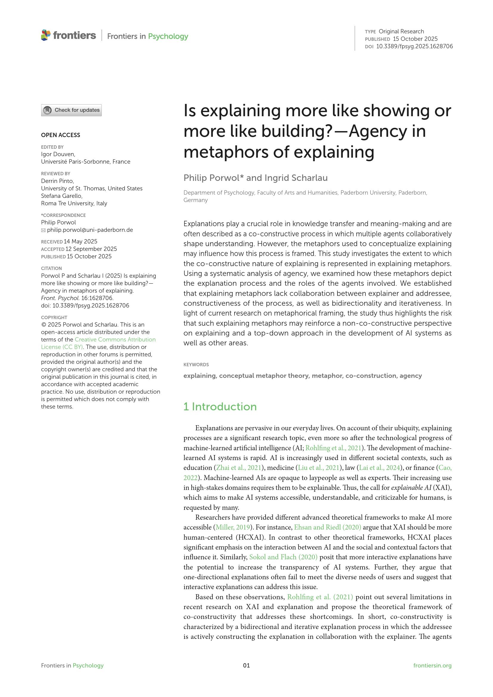 Is explaining more like showing or more like building?—Agency in metaphors of explaining / Philip Porwol and Ingrid Scharlau