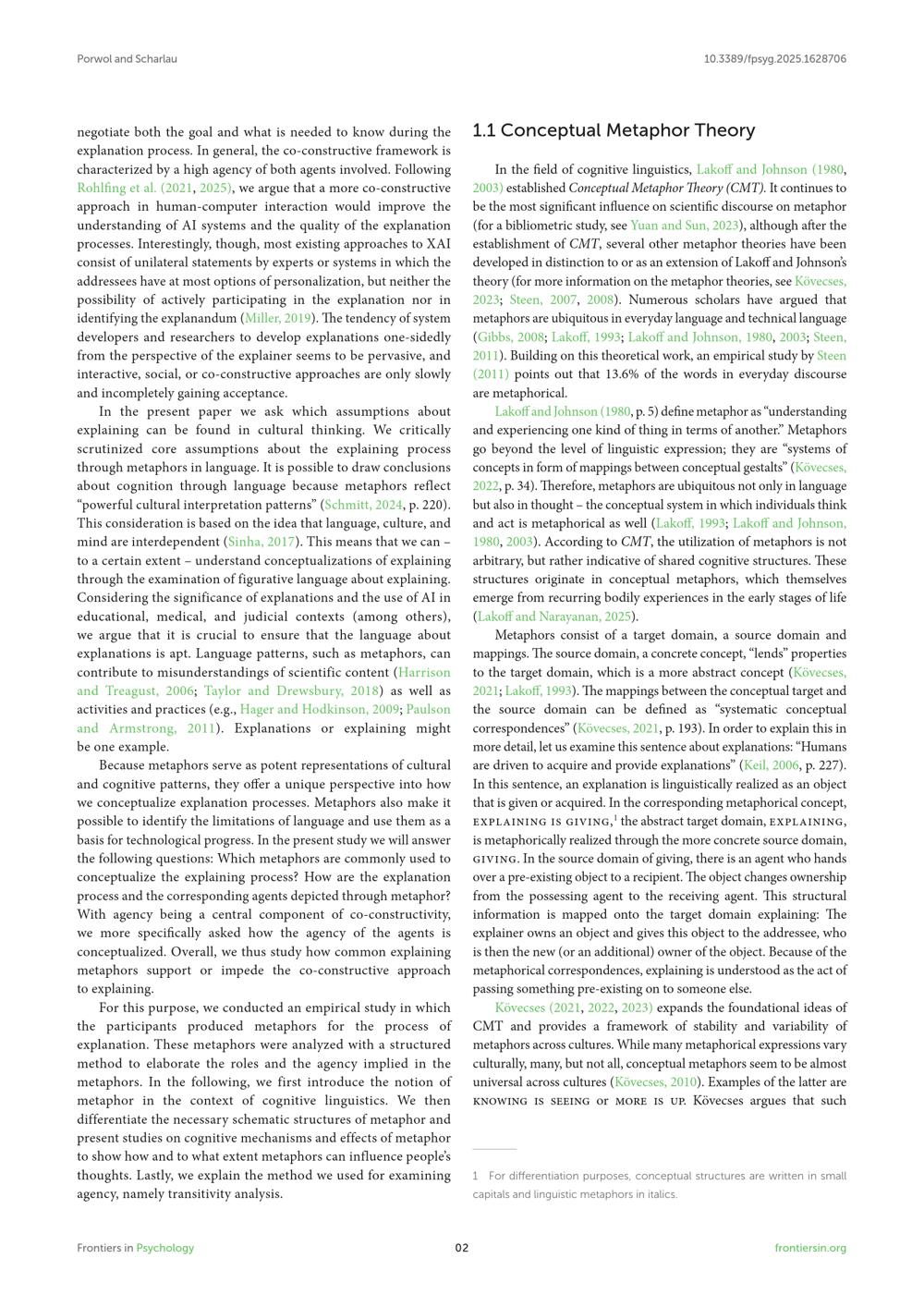 Is explaining more like showing or more like building?—Agency in metaphors of explaining / Philip Porwol and Ingrid Scharlau