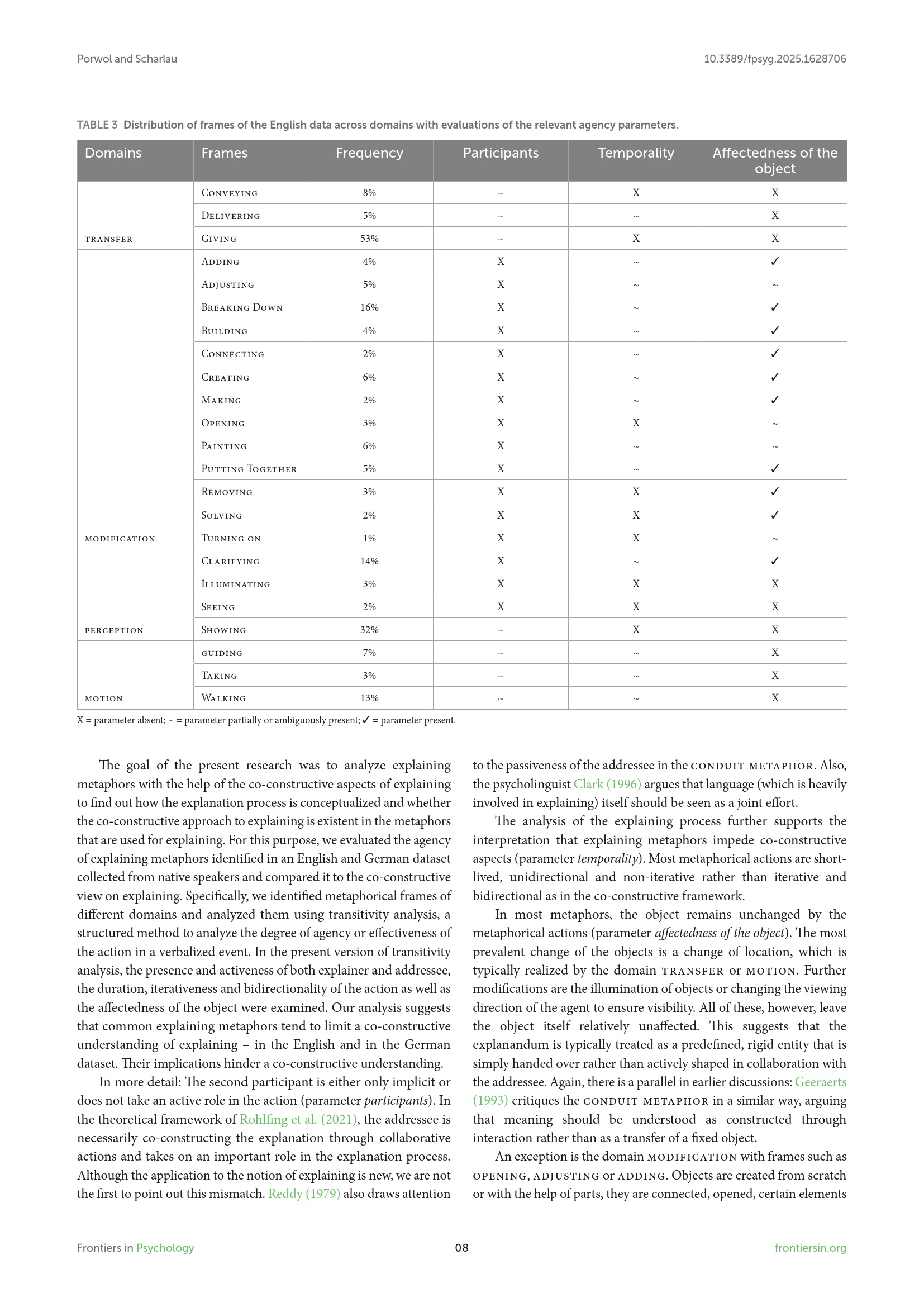Is explaining more like showing or more like building?—Agency in metaphors of explaining / Philip Porwol and Ingrid Scharlau
