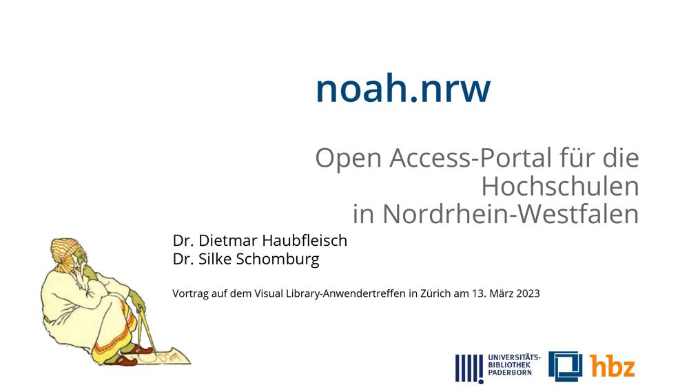 noah.nrw - Open Access-Portal für die Hochschulen in Nordrhein-Westfalen : Vortrag auf dem Visual Library-Anwendertreffen in Zürich am 13. März 2023 / Dr. Dietmar Haubfleisch, Dr. Silke Schomburg