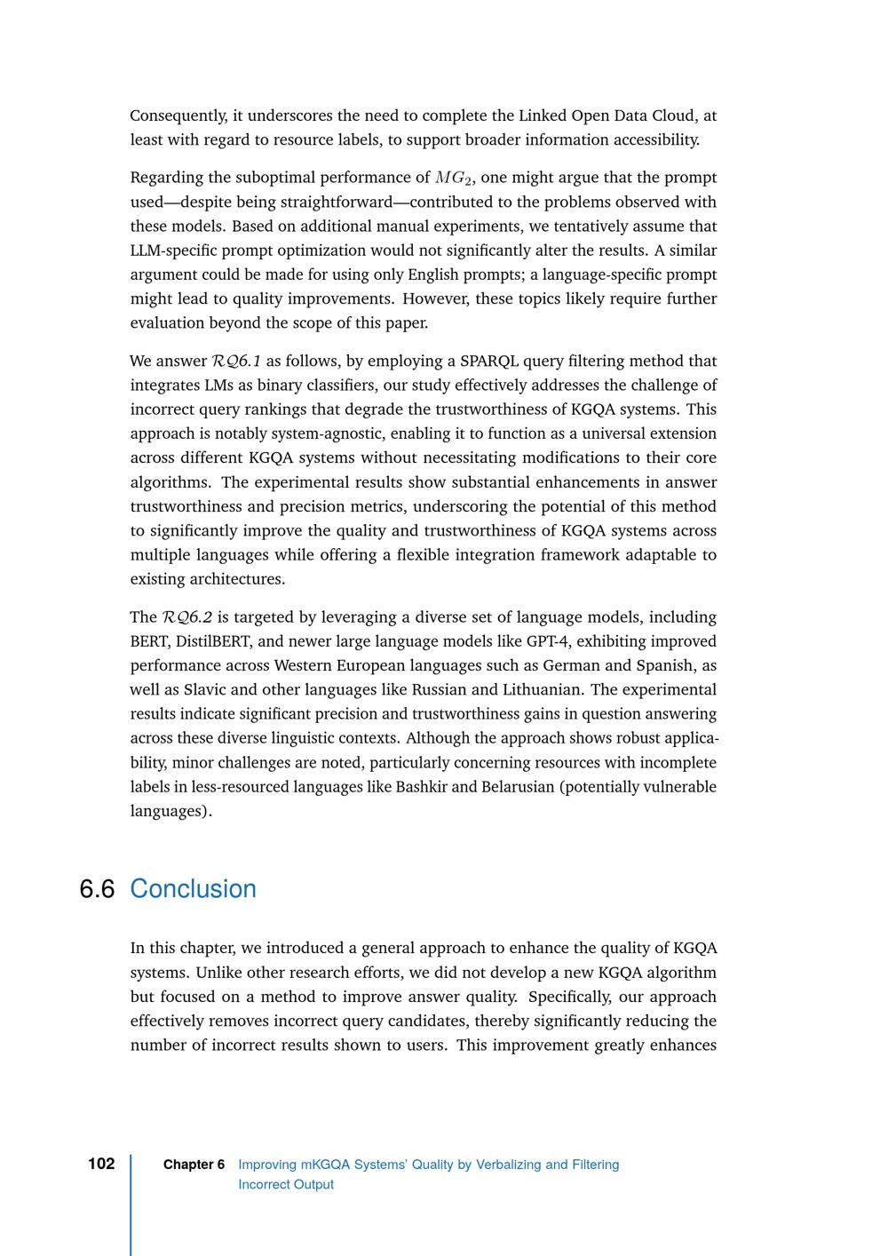 6 Improving mKGQA Systems' Quality by Verbalizing and Filtering Incorrect Output