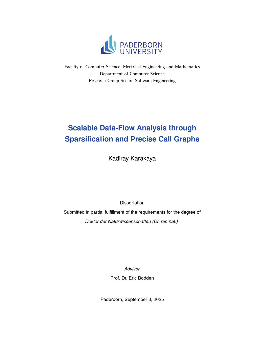 Scalable data-flow analysis through sparsification and precise call graphs / Kadiray Karakaya ; Advisor Prof. Dr. Eric Bodden