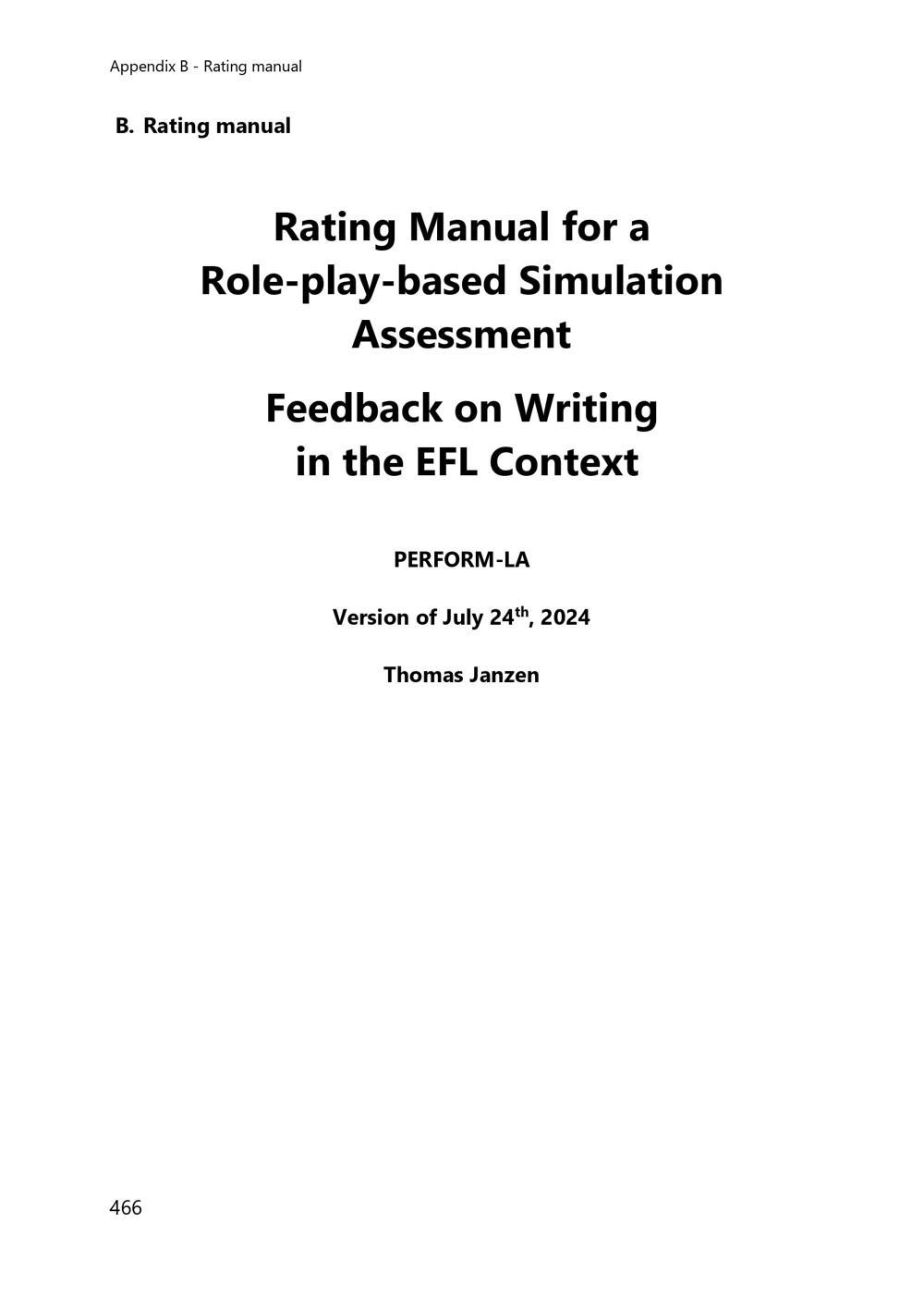Show, don’t tell : developing and validating a role-play-based simulation (RobS) for the assessment of pre-service EFL teachers feedback competence on writing / Thomas Janzen
