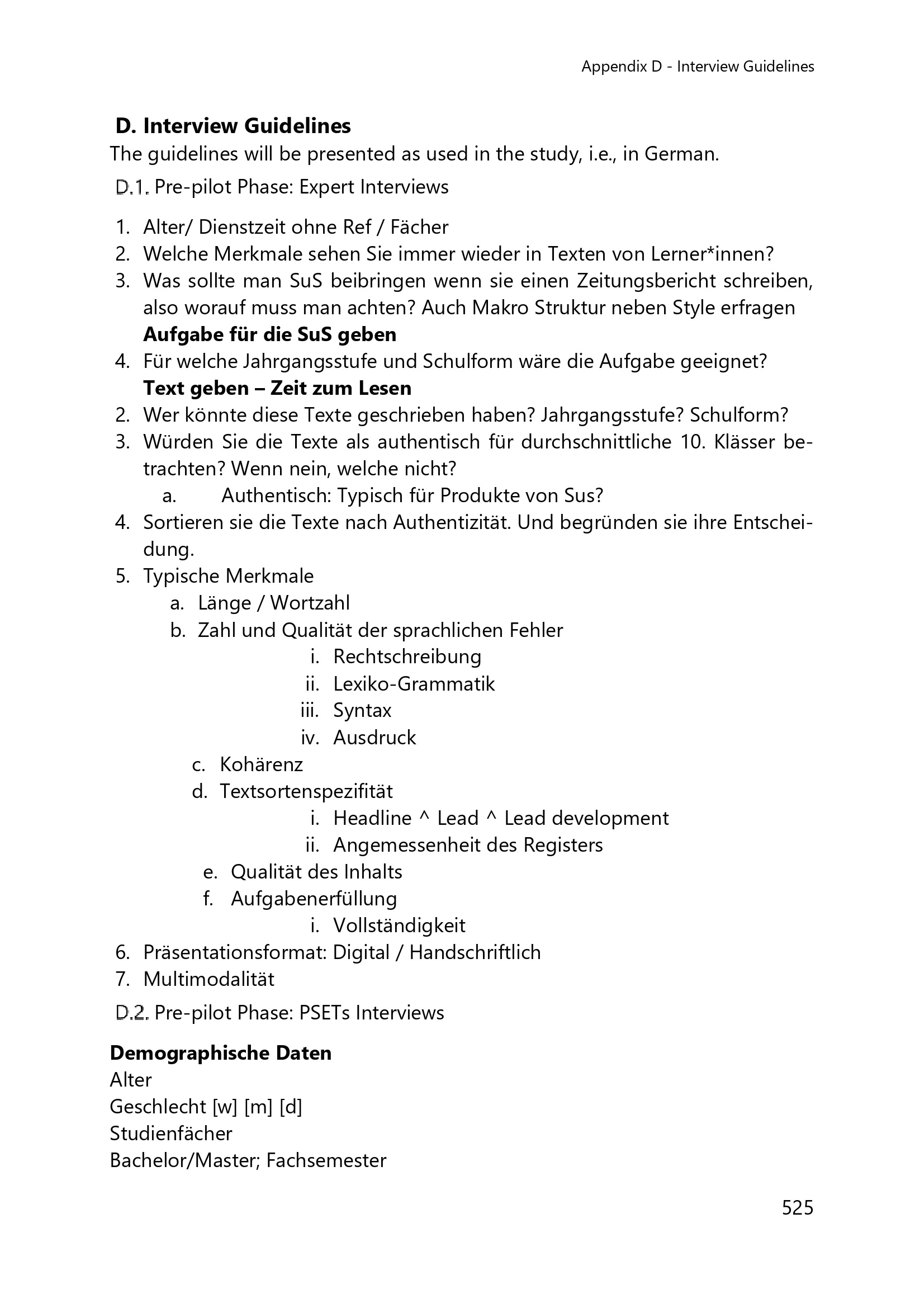 D.1. Pre-pilot Phase: Expert Interviews