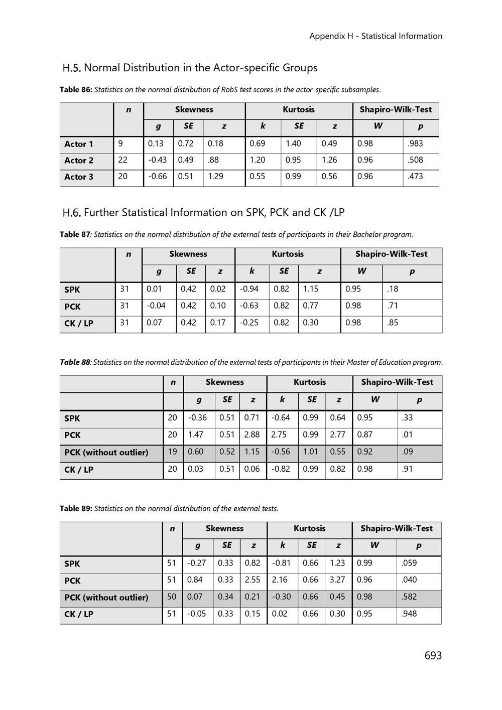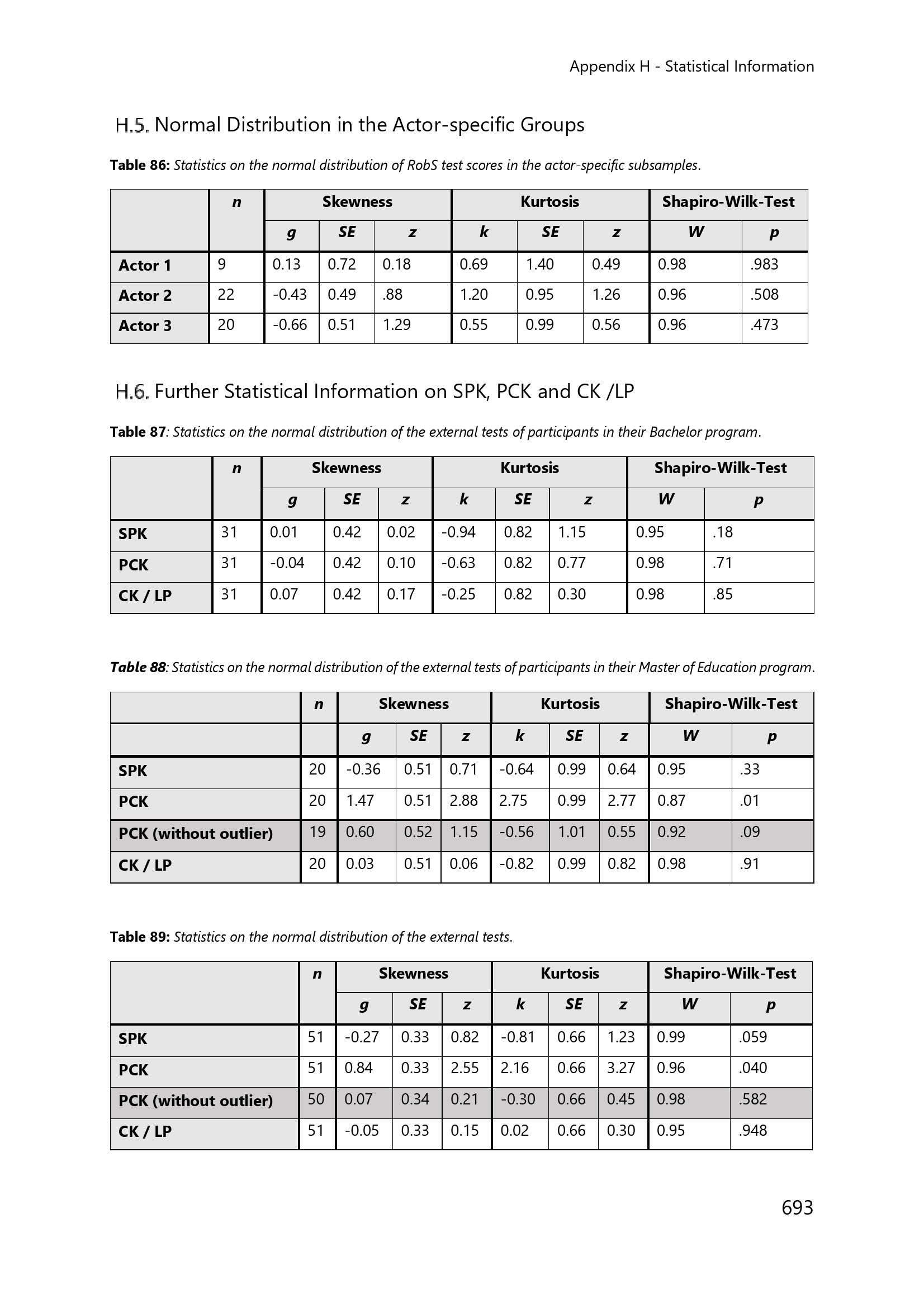 H.5. Normal Distribution in the Actor-specific Groups