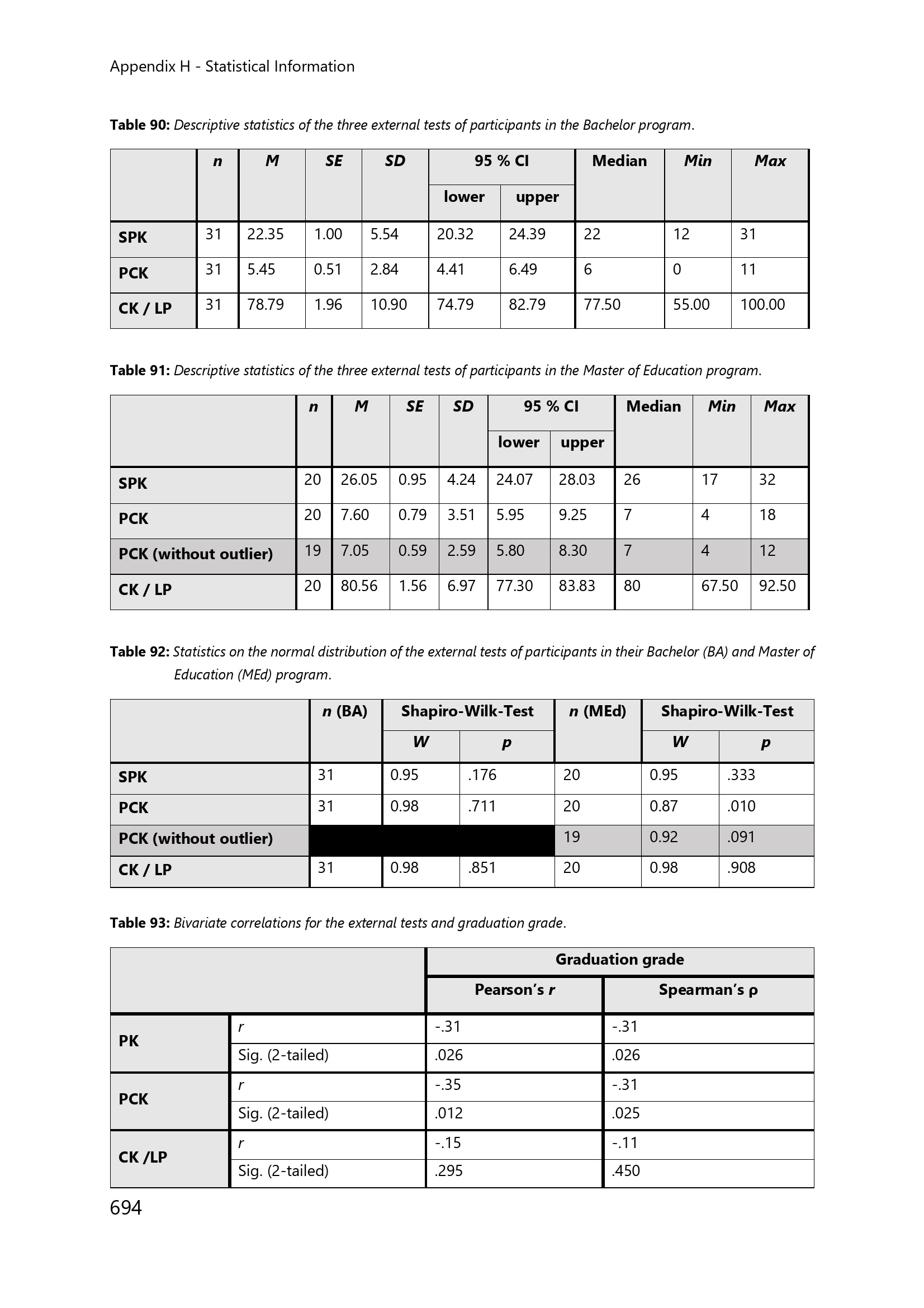 H.6. Further Statistical Information on SPK, PCK and CK /LP