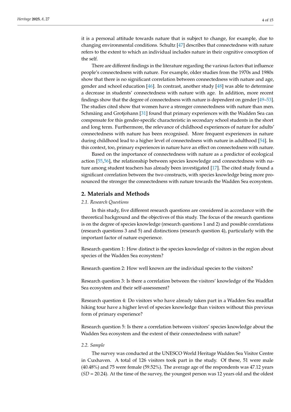 Species Knowledge About a UNESCO Natural World Heritage Site and the Importance of Connectedness with Nature / Ricardo Puppe and Till Schmäing