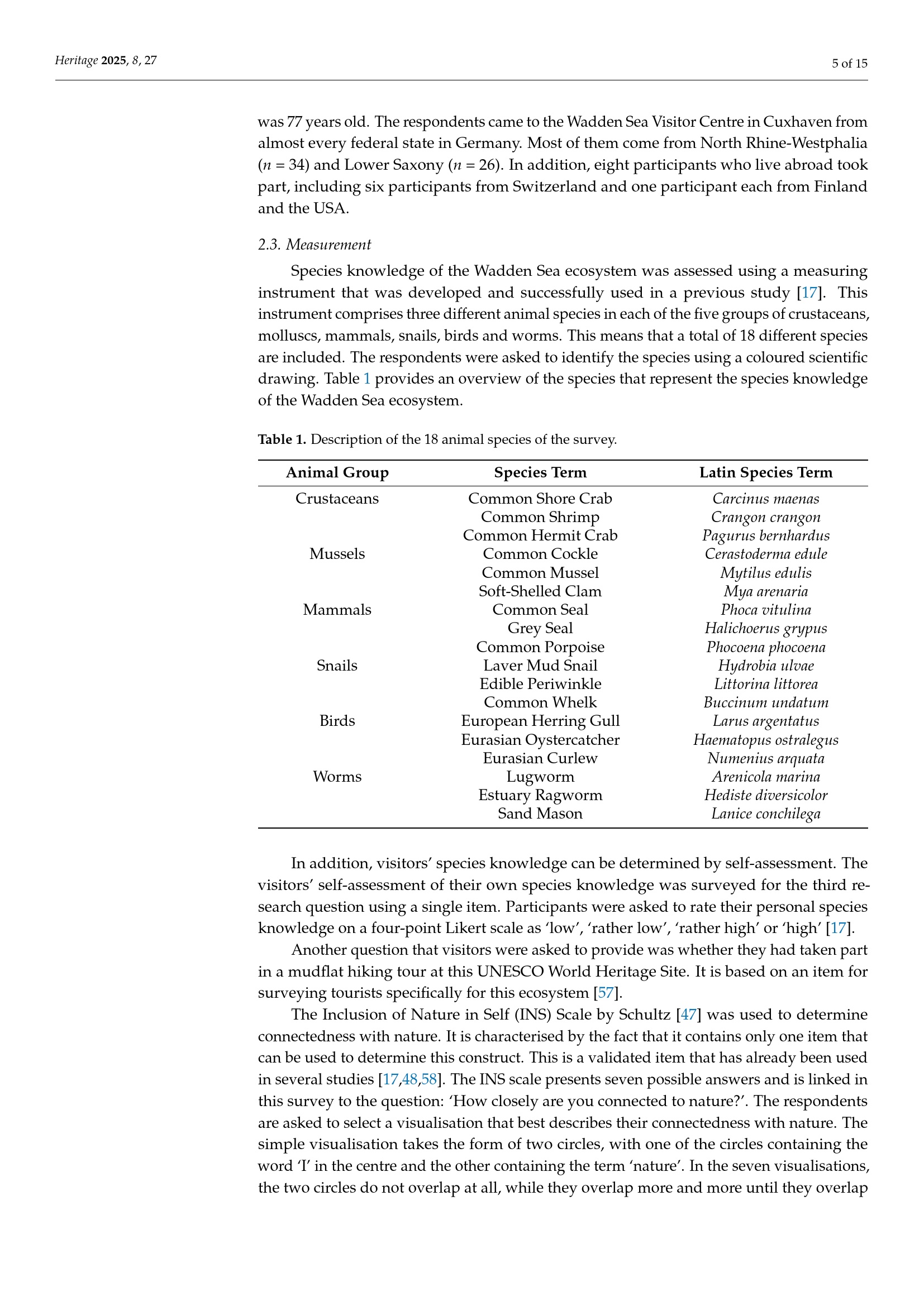Species Knowledge About a UNESCO Natural World Heritage Site and the Importance of Connectedness with Nature / Ricardo Puppe and Till Schmäing