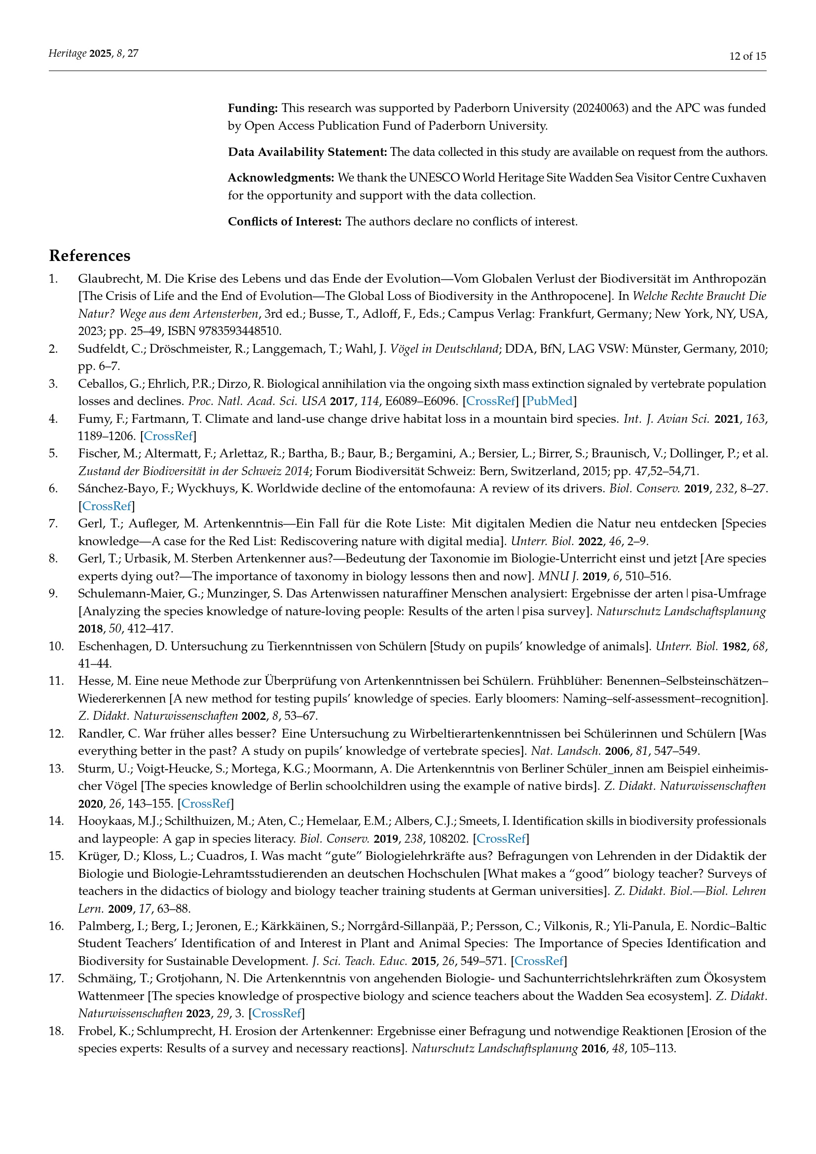 Species Knowledge About a UNESCO Natural World Heritage Site and the Importance of Connectedness with Nature / Ricardo Puppe and Till Schmäing