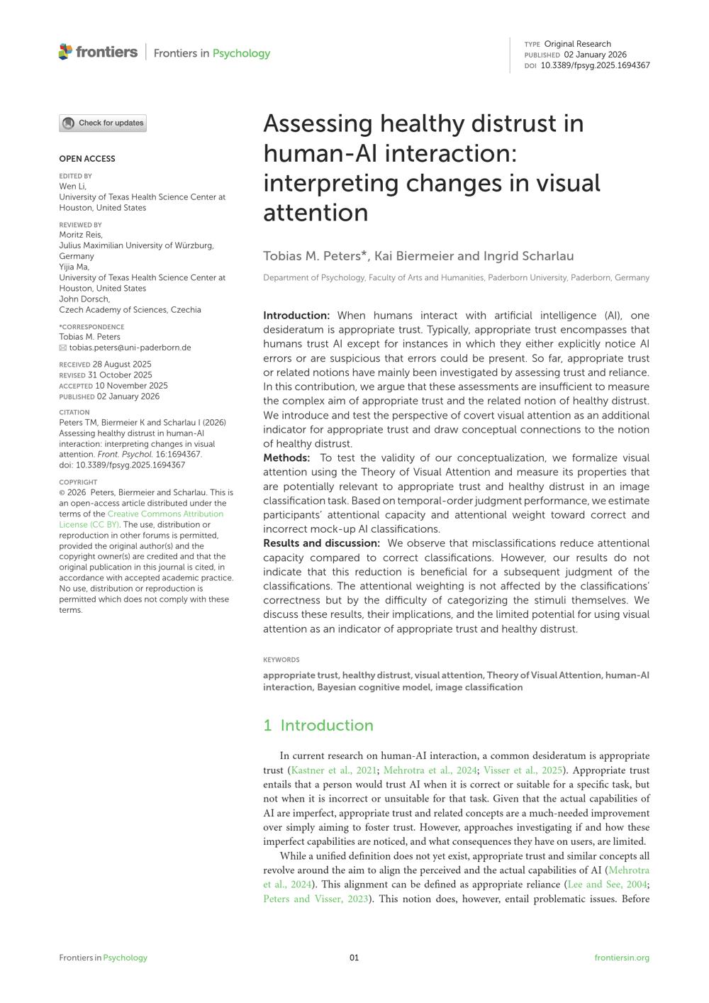 Assessing healthy distrust in human-AI interaction : interpreting changes in visual attention / Tobias M. Peters, Kai Biermeier and Ingrid Scharlau