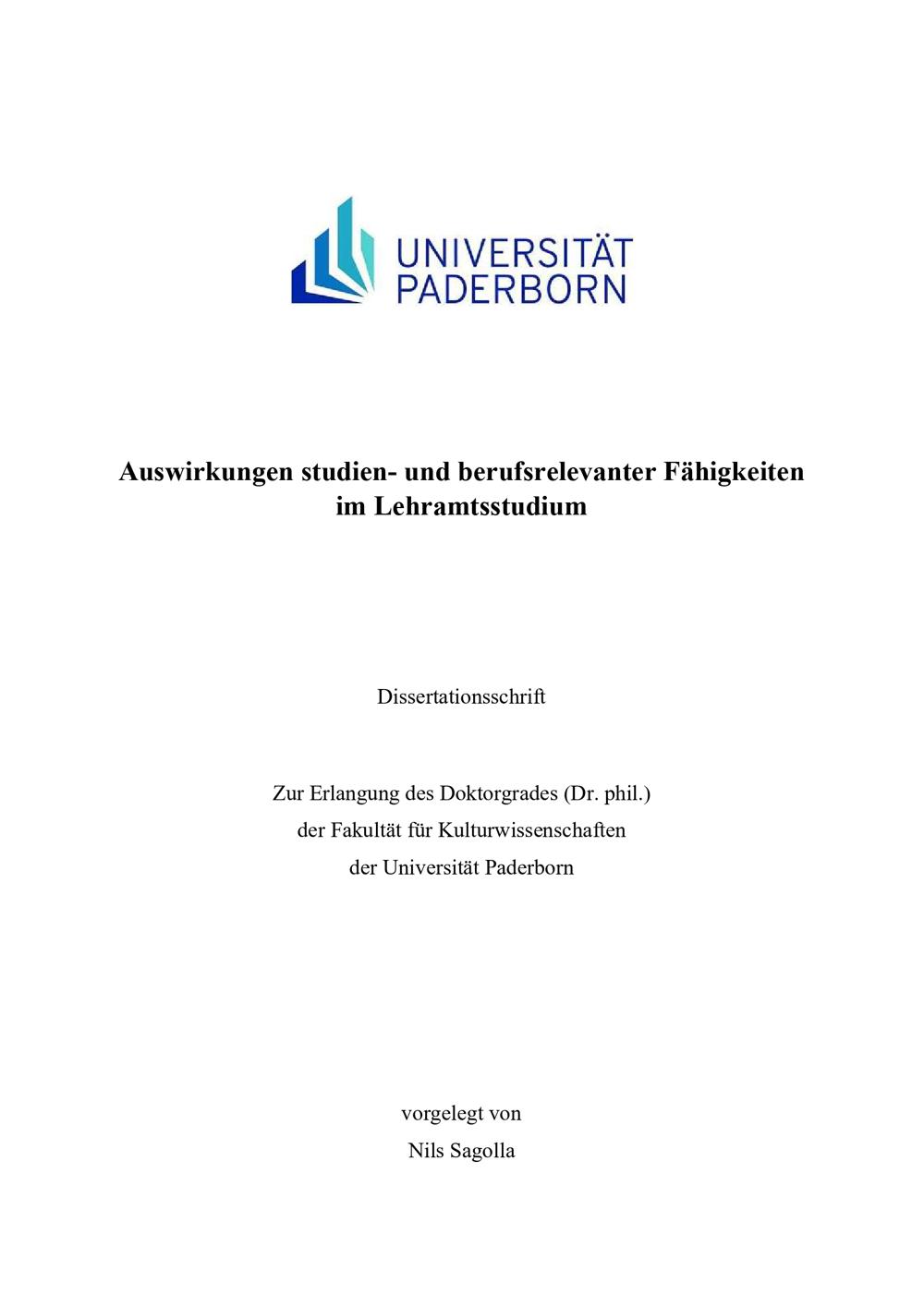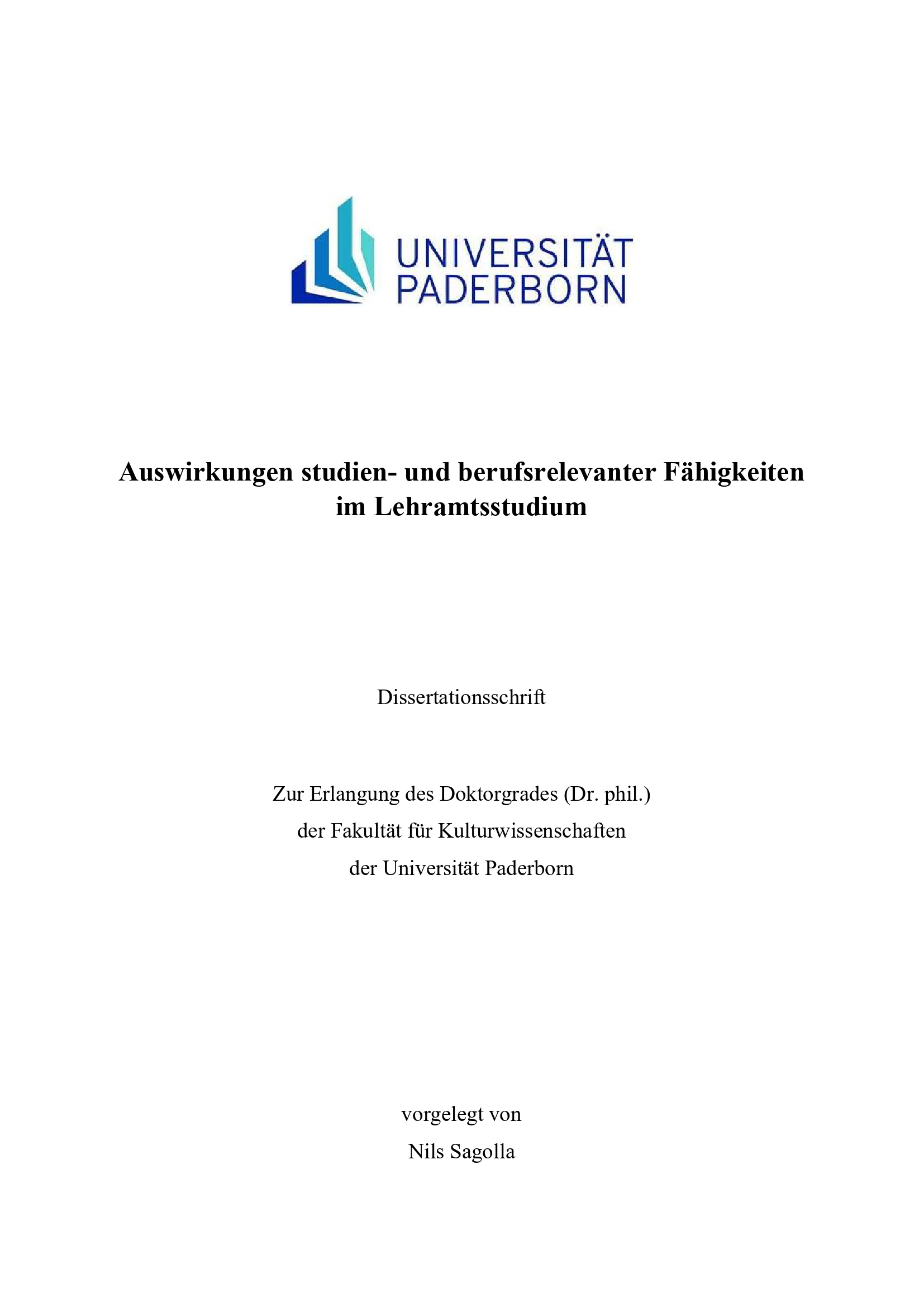 Auswirkungen studien- und berufsrelevanter Fähigkeiten im Lehramtsstudium / von Nils Sagolla ; Erstgutachterin: Prof. Dr. Heike M. Buhl, Zweitgutachter: Prof. Dr. Niclas Schaper