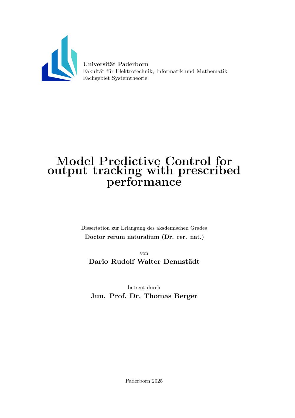 Model Predictive Control for output tracking with prescribed performance / Dario Rudolf Walter Dennstädt ; betreut durch Jun. Prof. Dr. Thomas Berger