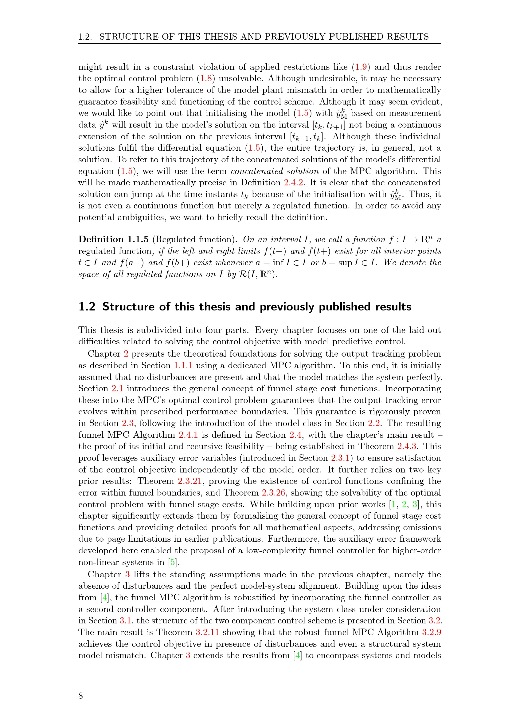 Structure of this thesis and previously published results