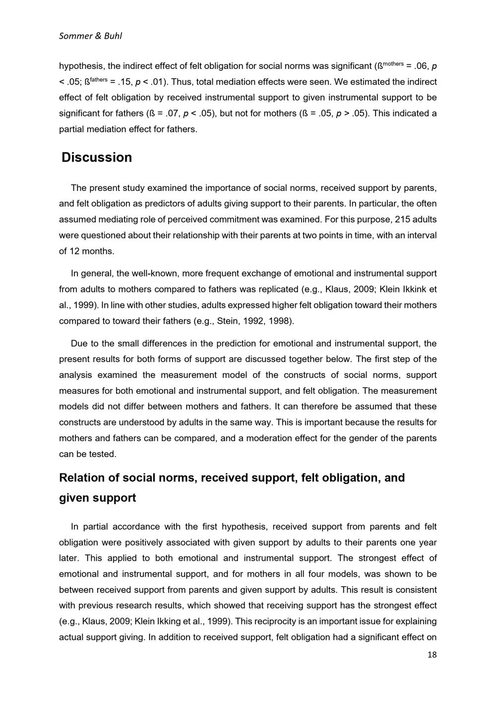 The role of norms, received support, and felt obligation for intergenerational support / Sabrina Sommer & Heike M. Buhl