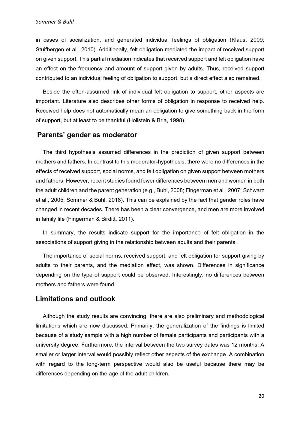 The role of norms, received support, and felt obligation for intergenerational support / Sabrina Sommer & Heike M. Buhl